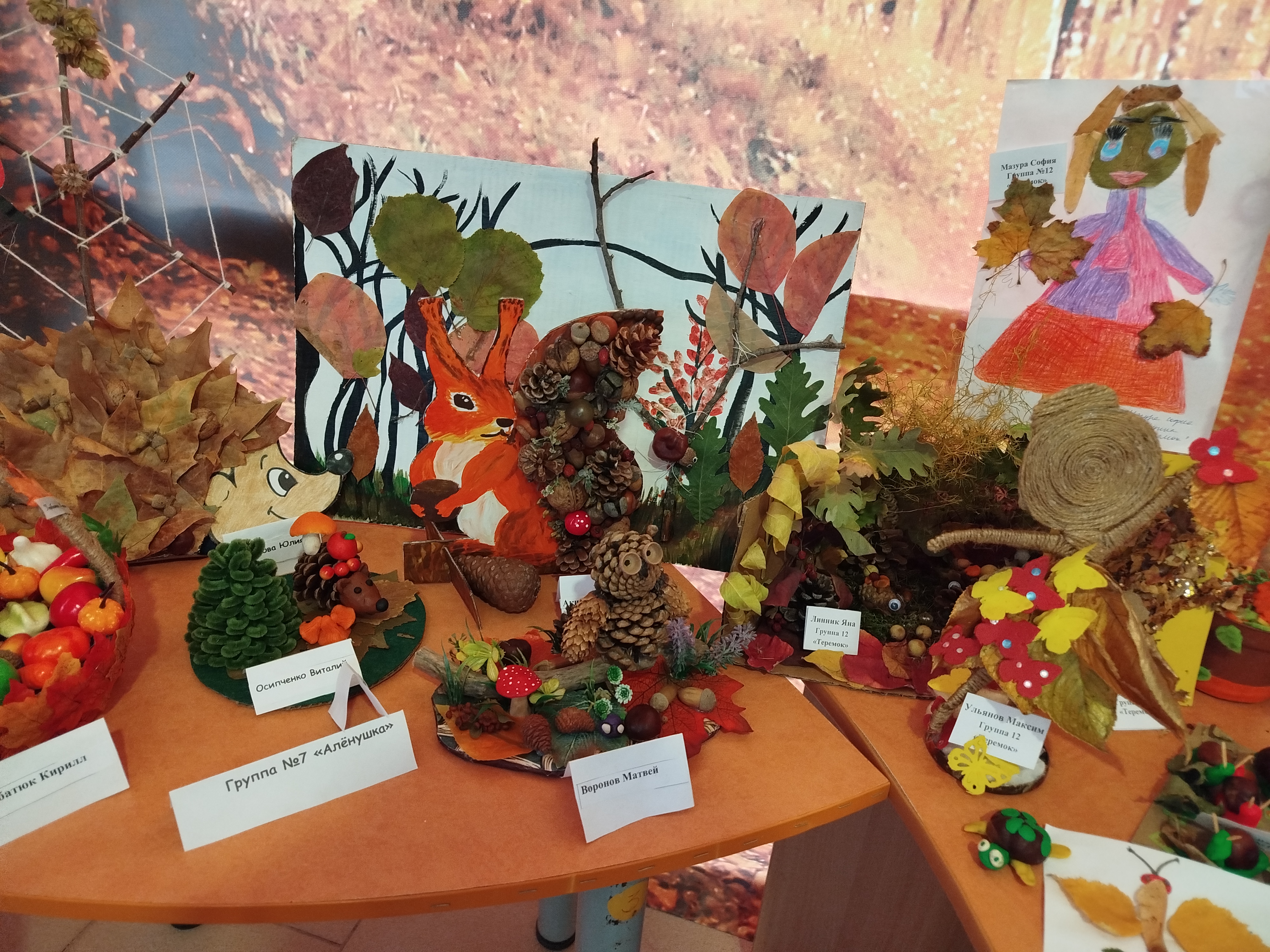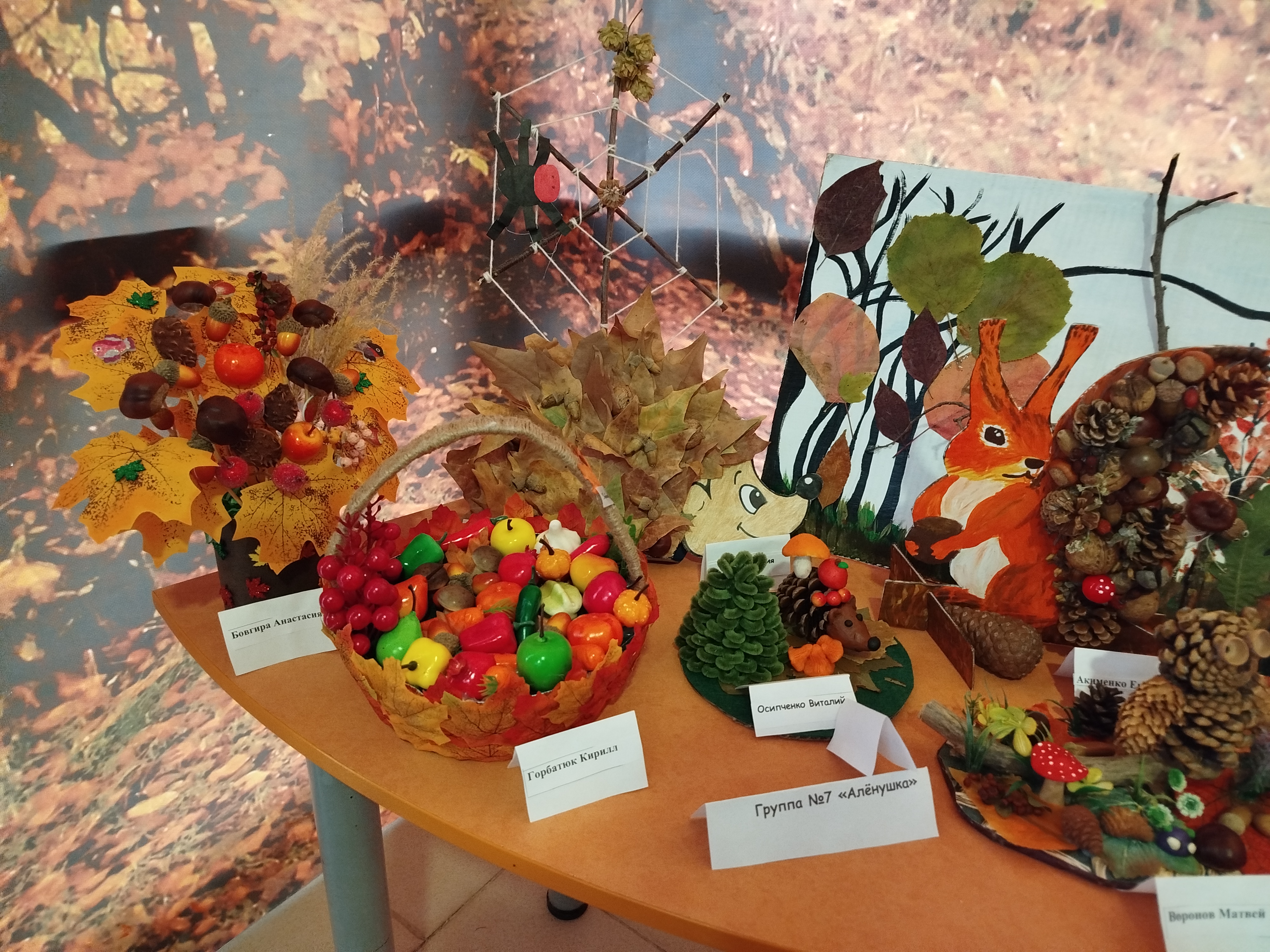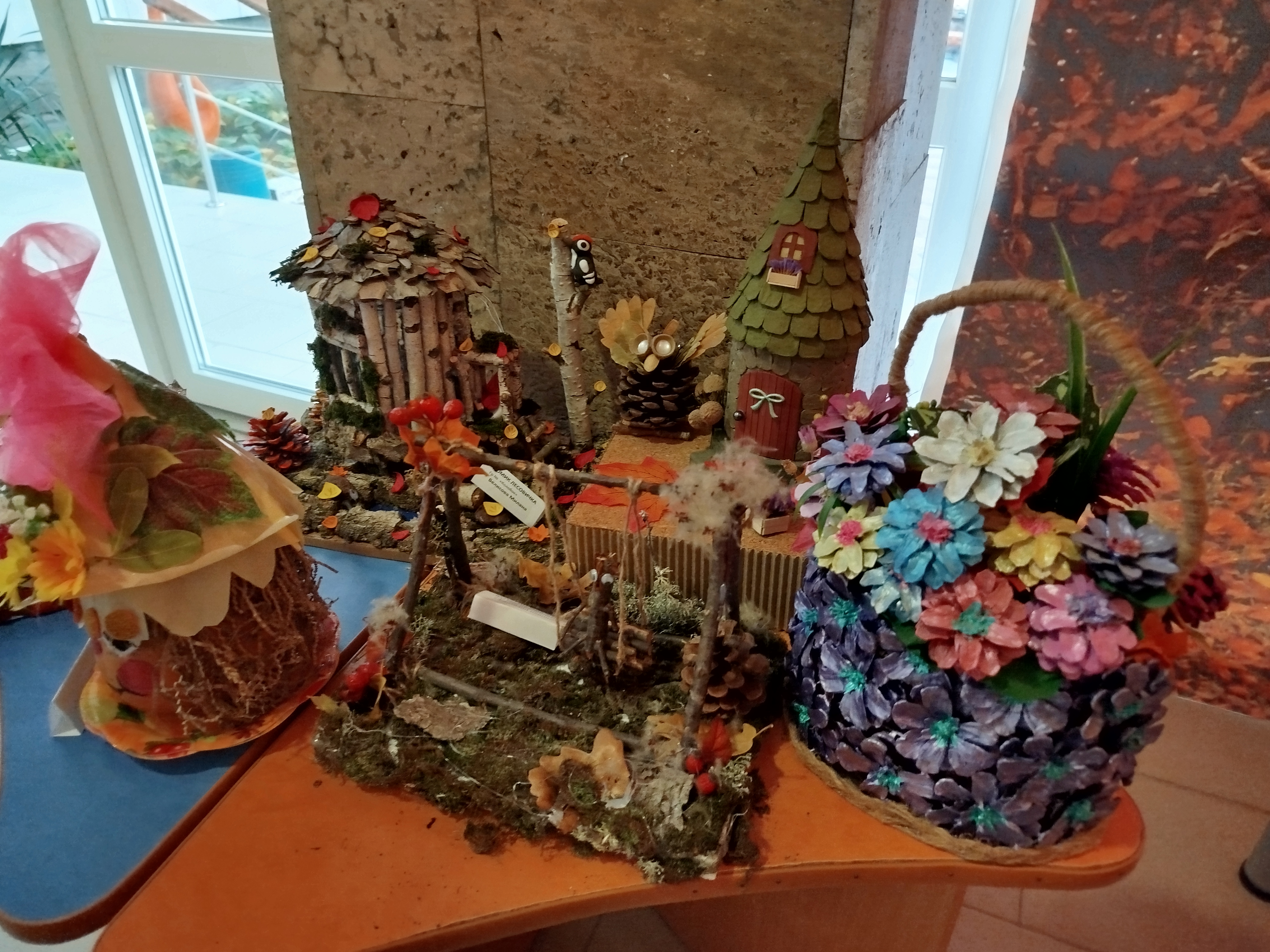 В "Сказке" прошла выставка осенних поделок "Фантазии осени", созданная детьми совместно с родителями и педагогами. В процессе создания работ использовались природные материалы: листья, шишки, веточки, плоды и кора.