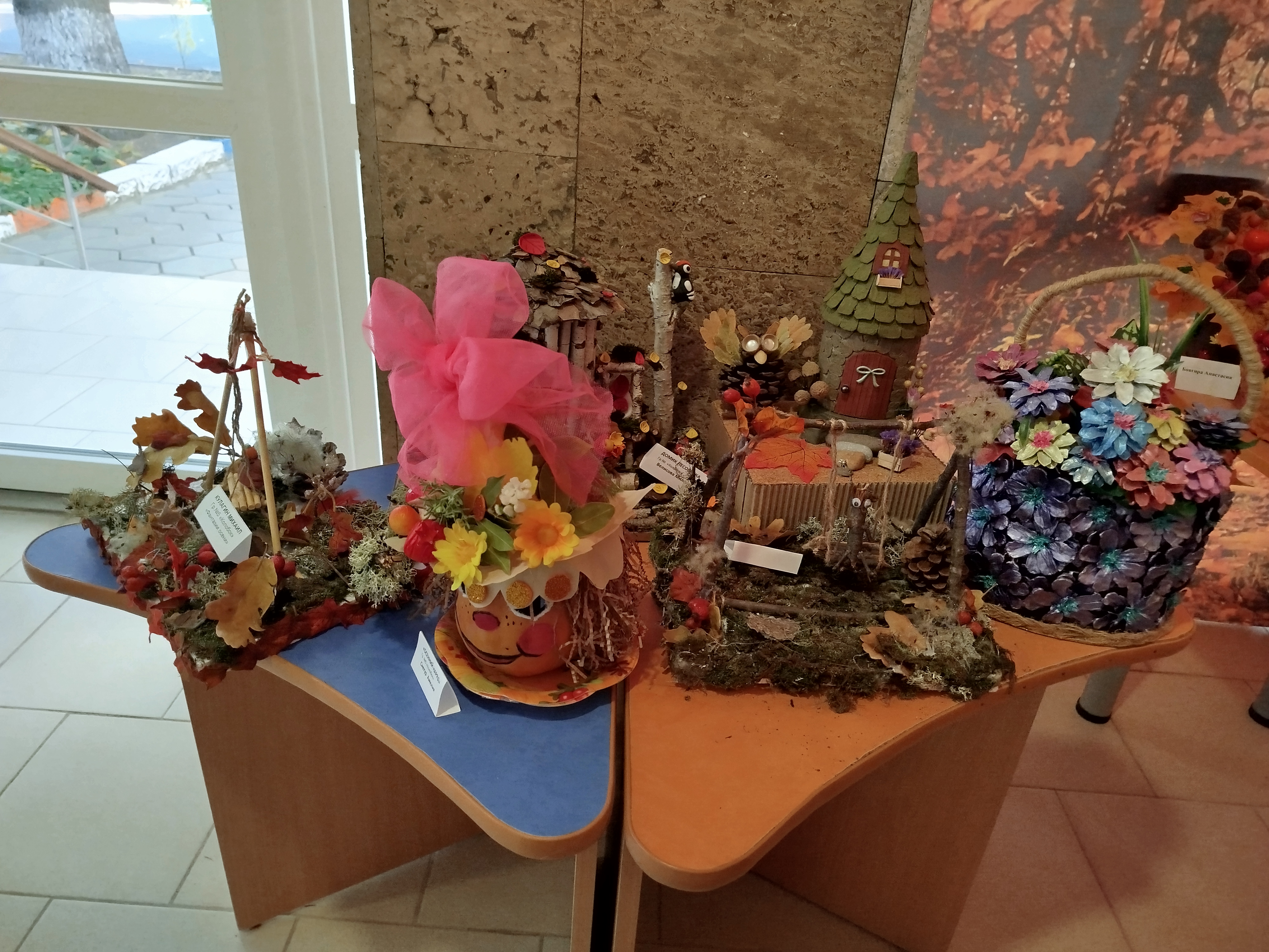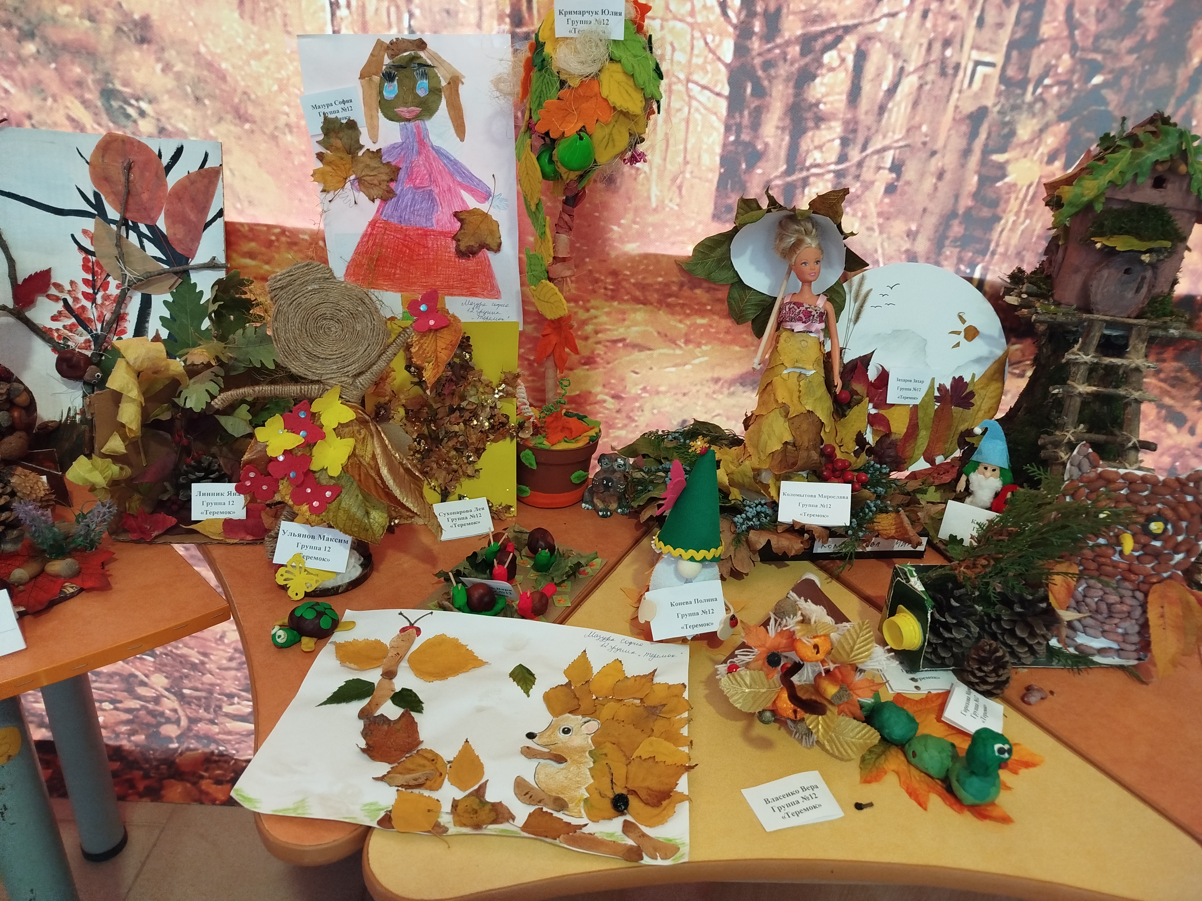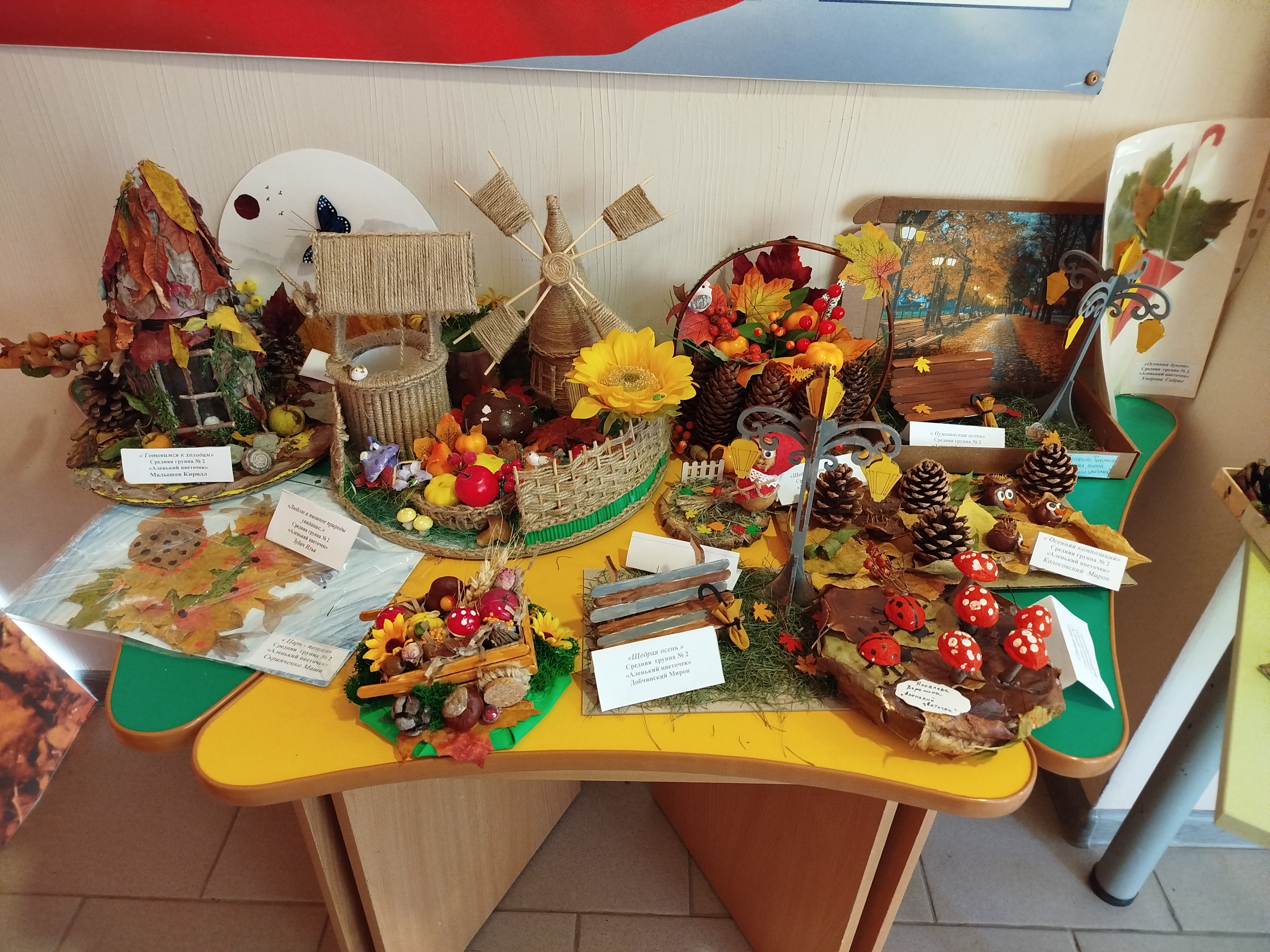 В "Сказке" прошла выставка осенних поделок "Фантазии осени", созданная детьми совместно с родителями и педагогами. В процессе создания работ использовались природные материалы: листья, шишки, веточки, плоды и кора.