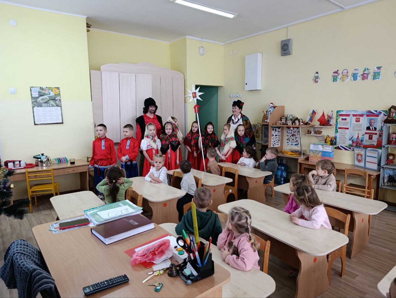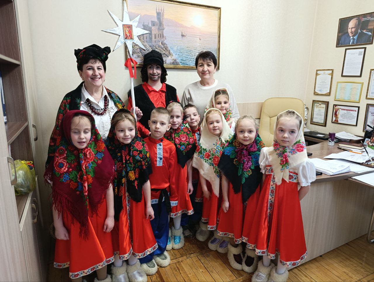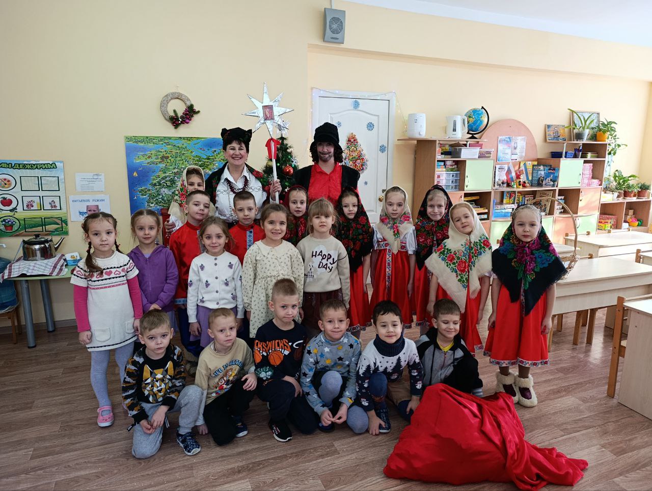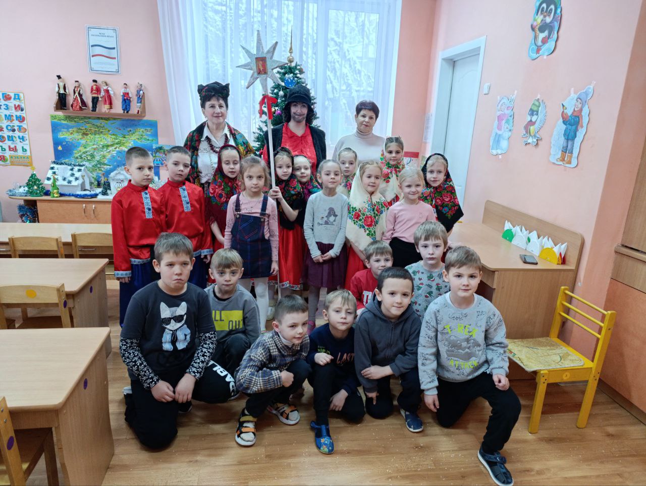 В Святочные вечера устраивались на Руси праздничные гуляния: по дворам ходили толпы ряженых, пели величальные песни, в которых славили хозяев, желали им доброго здоровья, богатого урожая. Все с нетерпением ожидали прихода ряженых с их колядками. Люди верили, что к кому они зайдут-тот двор в новом году удачлив будет, с достатком и прибылью. В нарядных костюмах, с песнями и закличками ряженые ребята и взрослые прославляя Коляду, исполняли колядные песни, заклички, с пожеланиями богатства и счастья. Праздник произвел на детей незабываемые впечатления, он получился весёлым и задорным! Участвуя в подобных мероприятиях, дошкольники приобщаются к народной культуре и традициям, а это является частью духовно-нравственного воспитания.