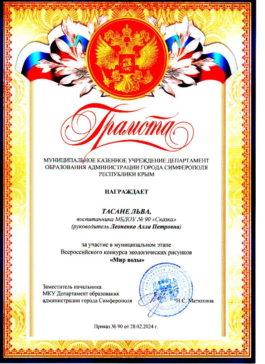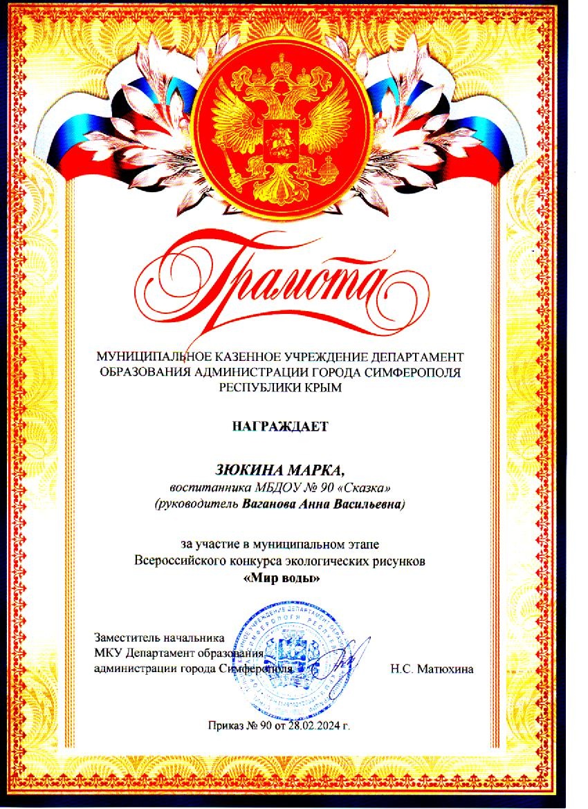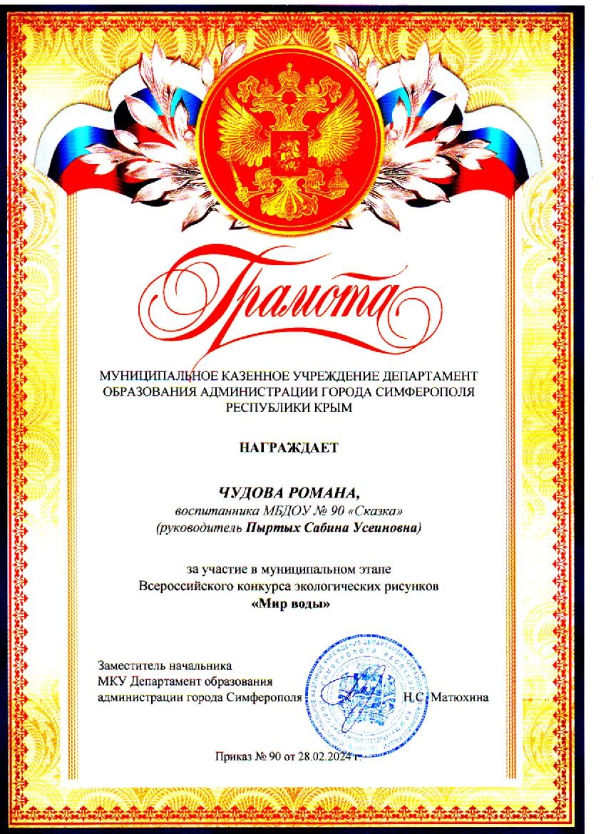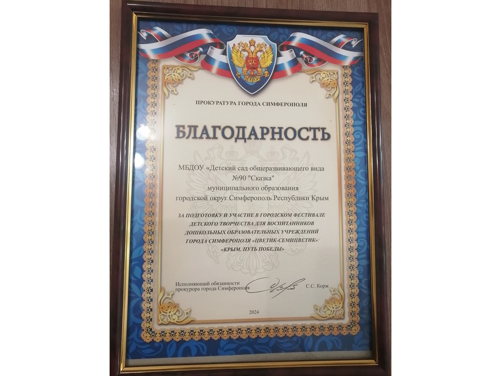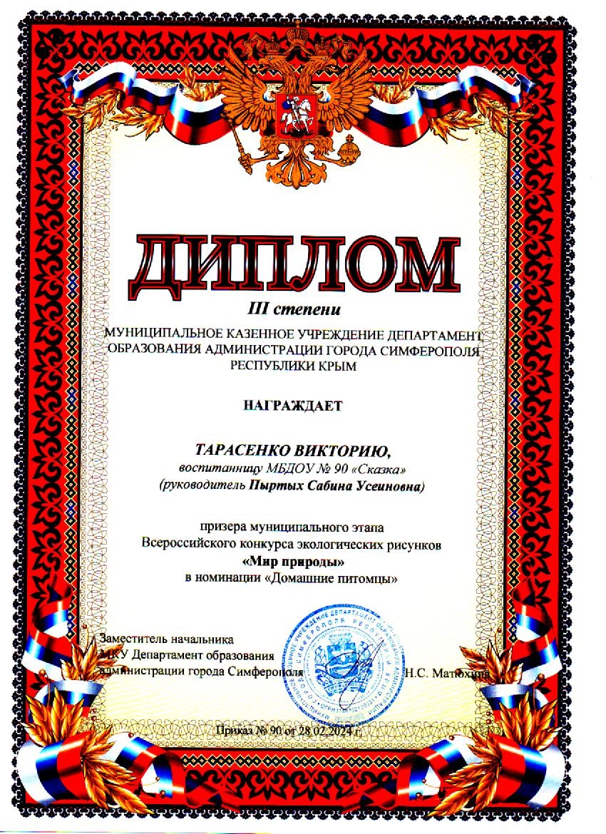 Муниципальное бюджетное дошкольное образовательное учреждение «Детский сад общеразвивающего вида №90 «Сказка» муниципального образования городской округ Симферополь Республики Крым