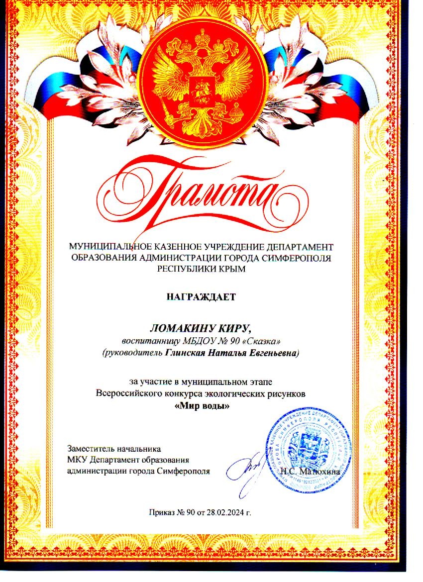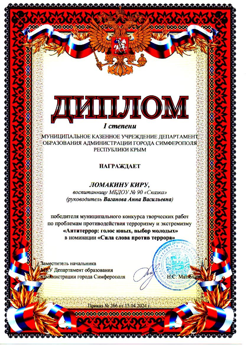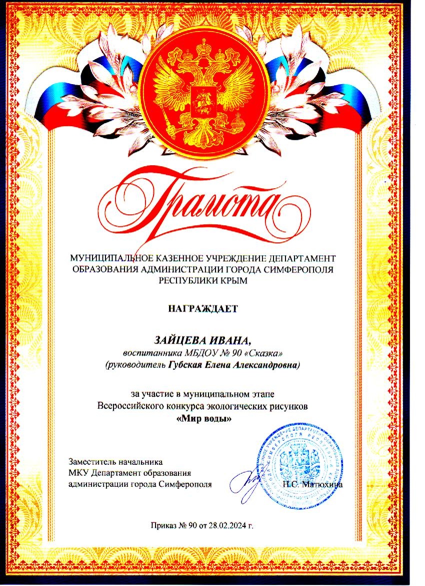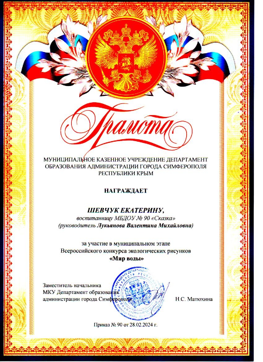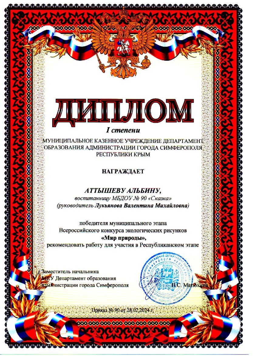 Муниципальное бюджетное дошкольное образовательное учреждение «Детский сад общеразвивающего вида №90 «Сказка» муниципального образования городской округ Симферополь Республики Крым