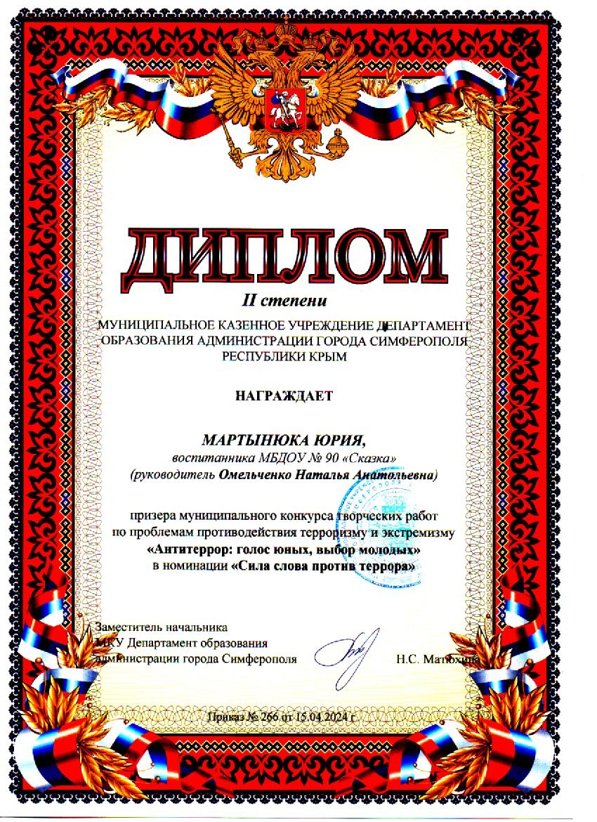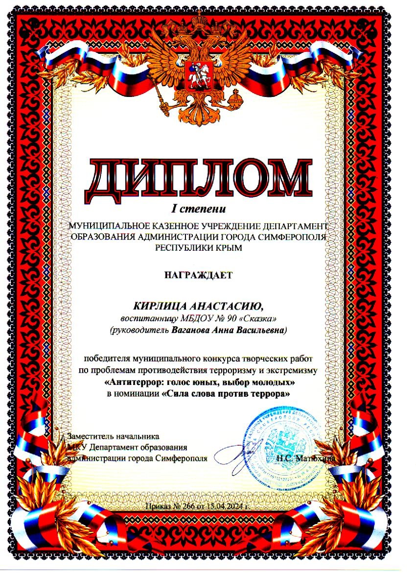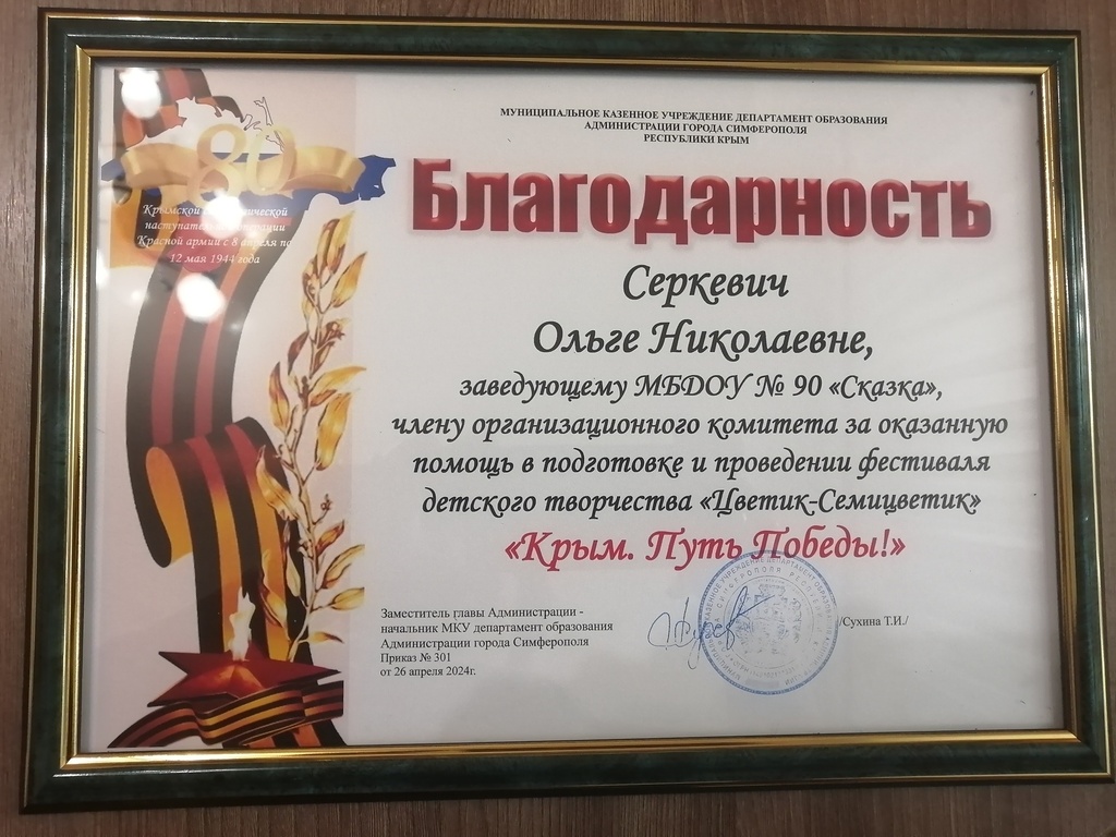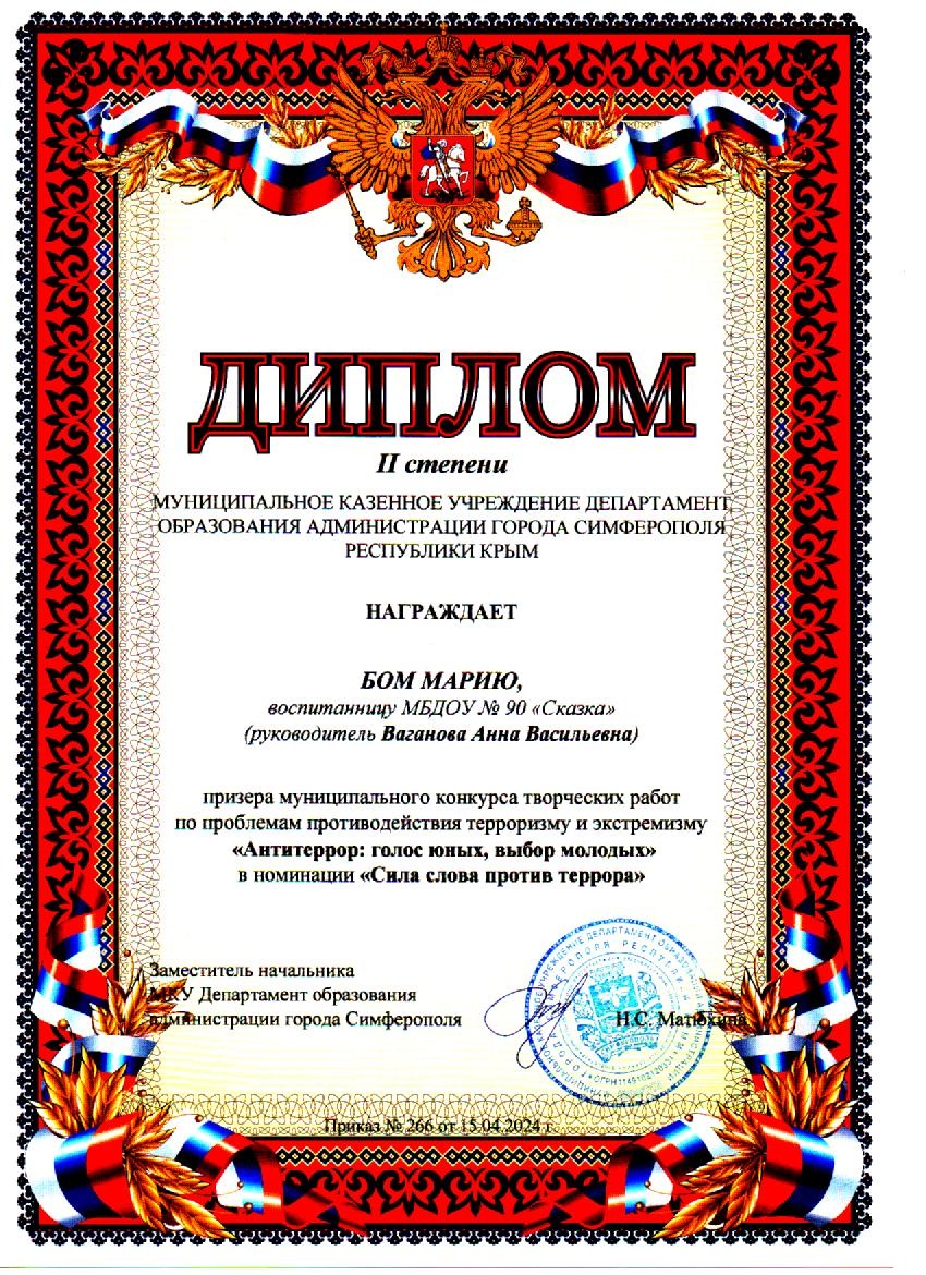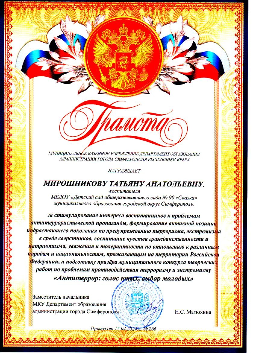 Муниципальное бюджетное дошкольное образовательное учреждение «Детский сад общеразвивающего вида №90 «Сказка» муниципального образования городской округ Симферополь Республики Крым