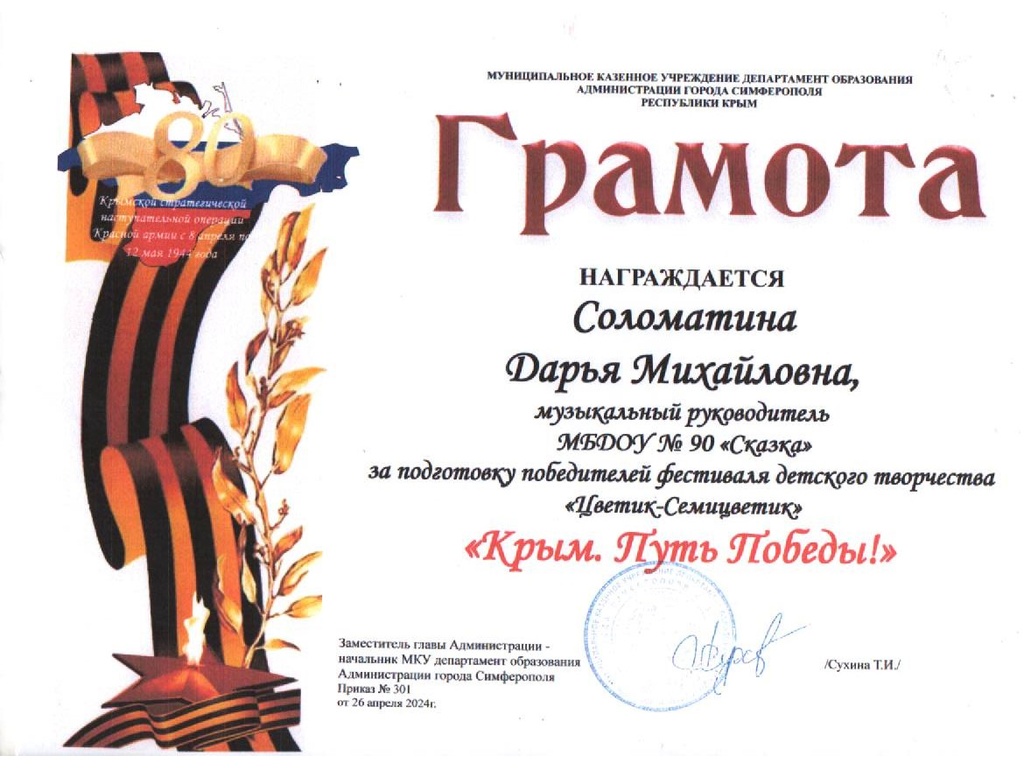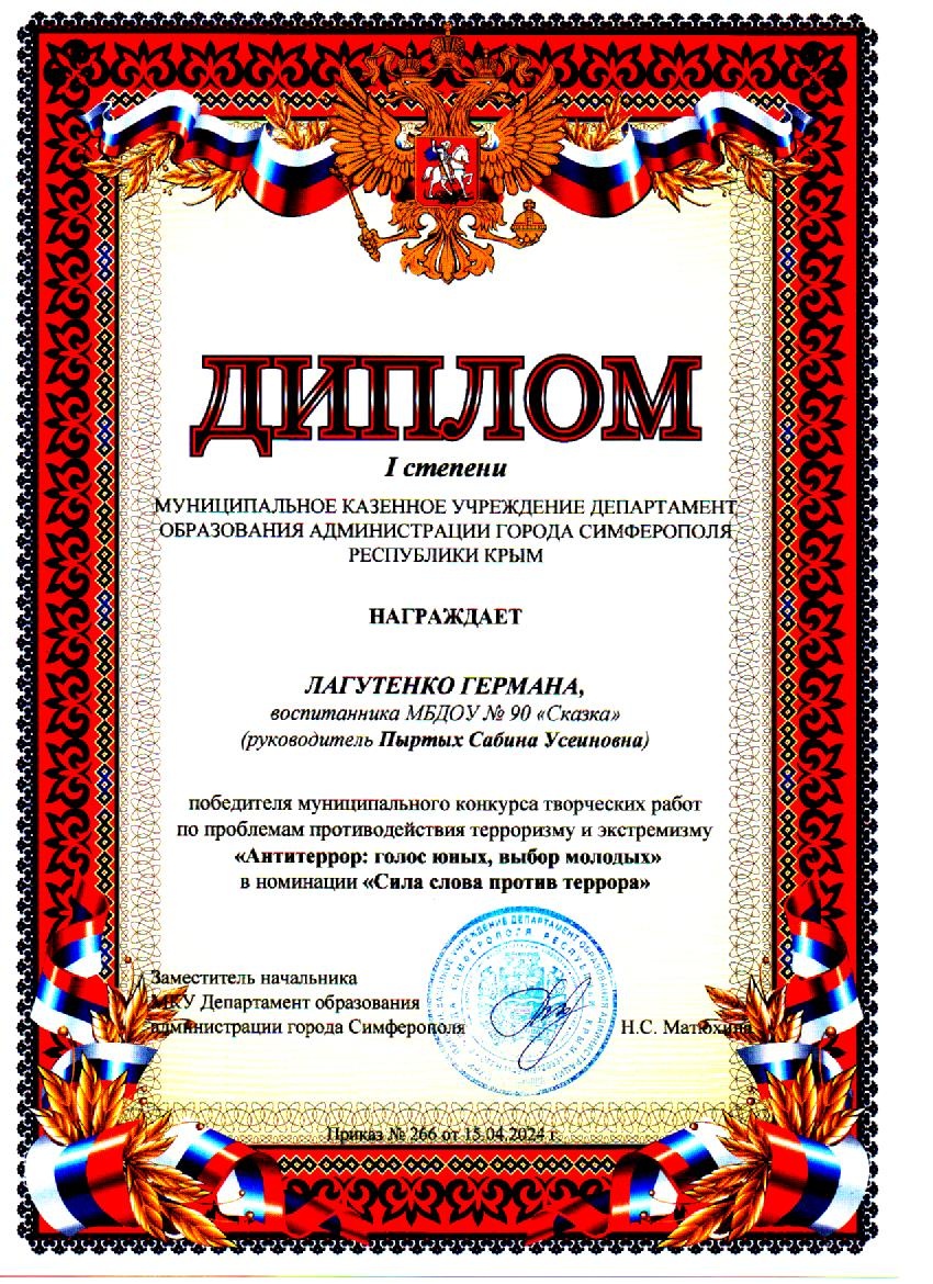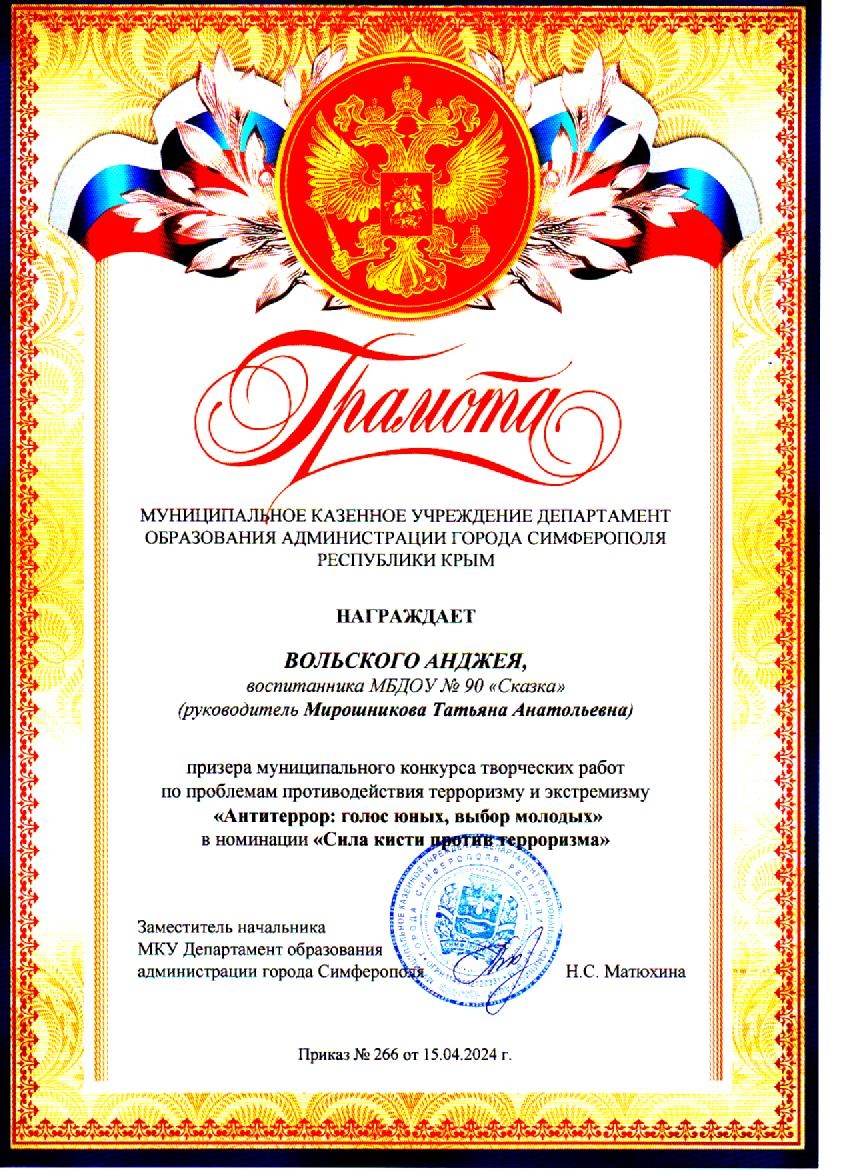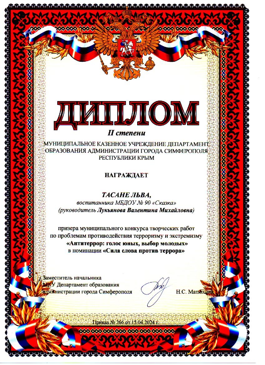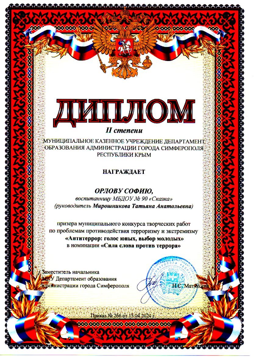 Муниципальное бюджетное дошкольное образовательное учреждение «Детский сад общеразвивающего вида №90 «Сказка» муниципального образования городской округ Симферополь Республики Крым