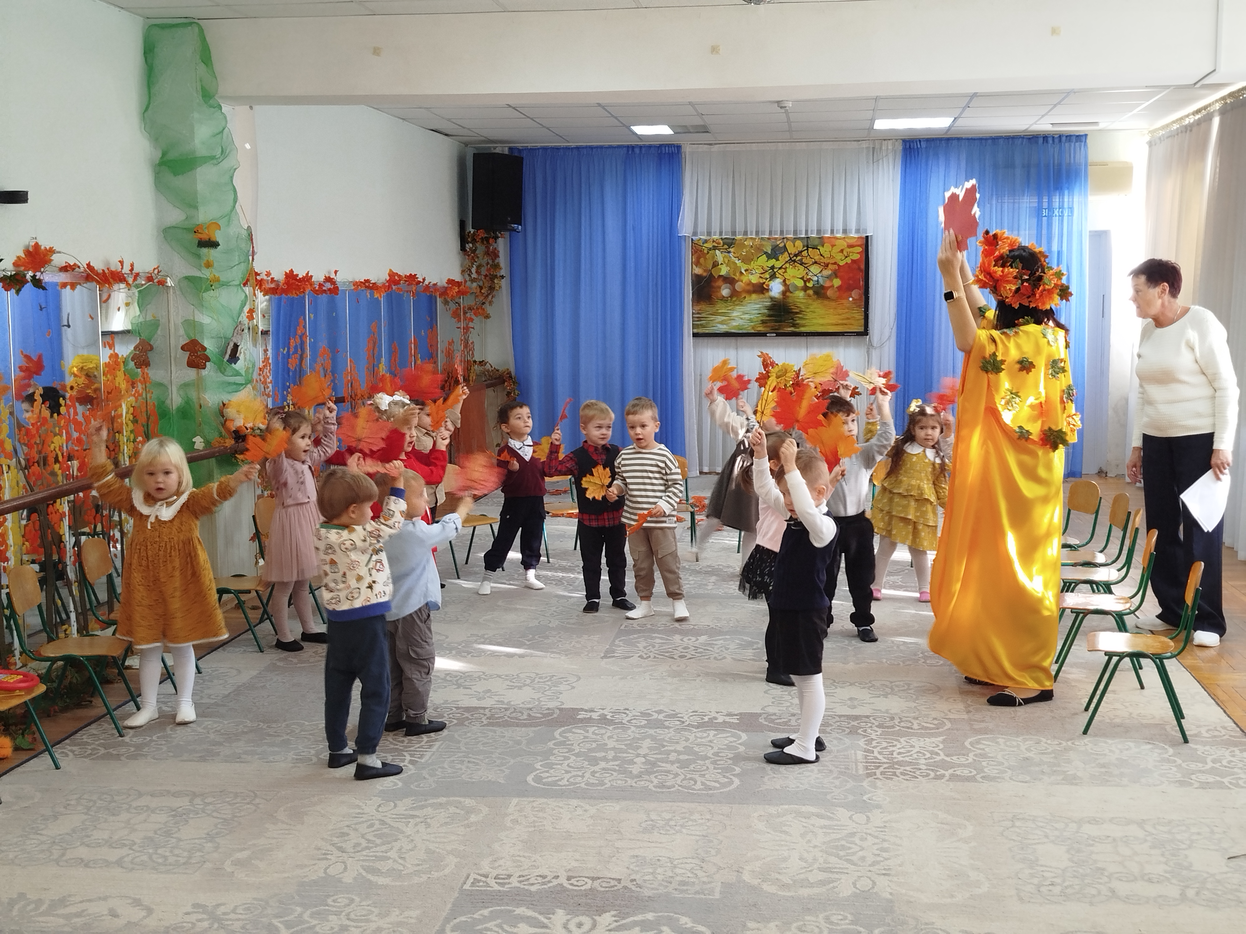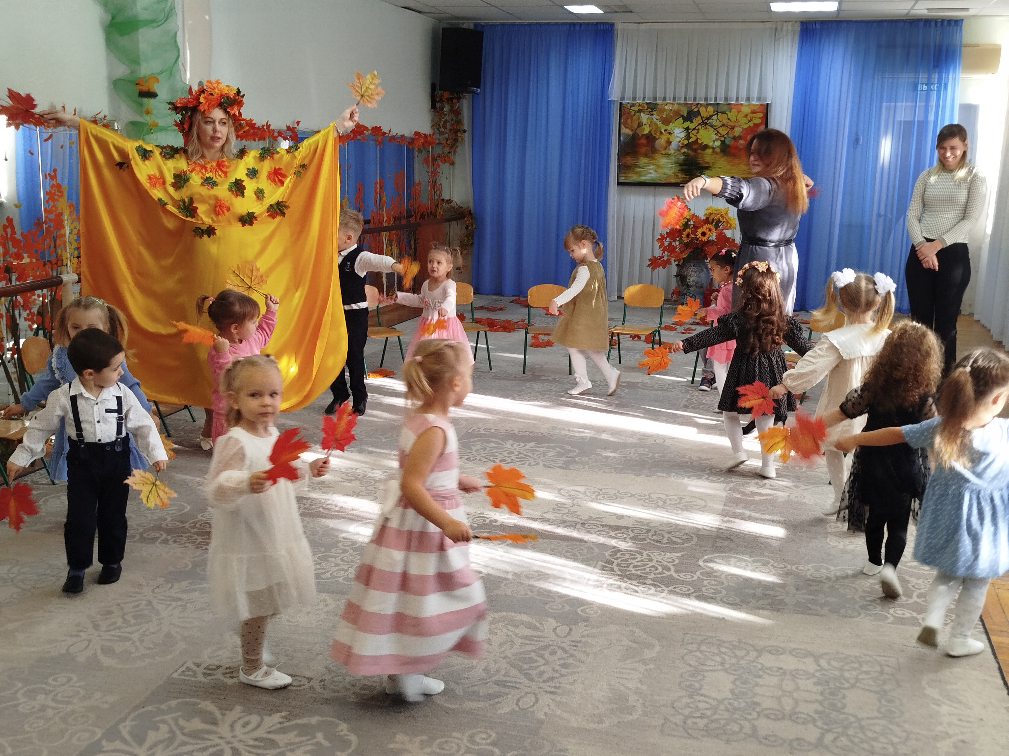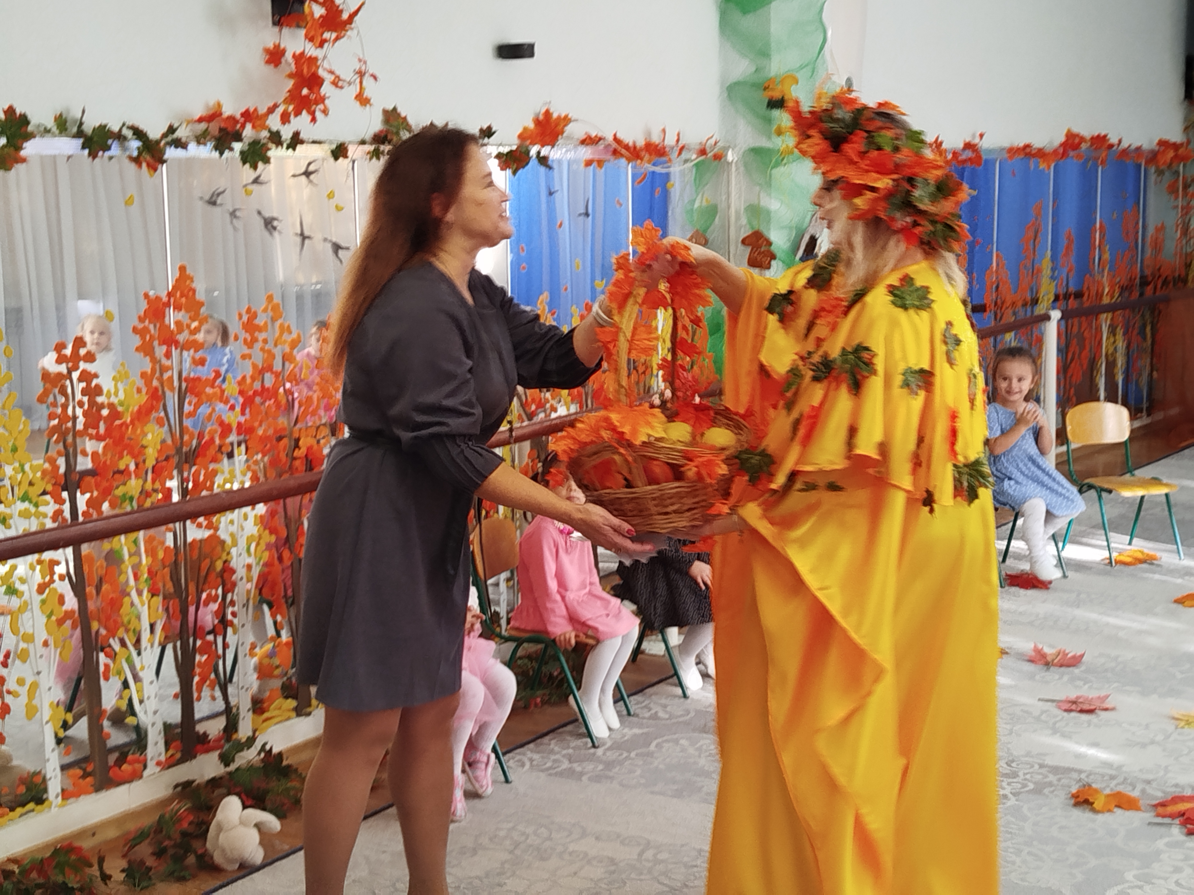 23 октября в "Сказке" прошли осенние развлечения в младших группах "Чебурашка" и "Журавушка". В гости к ребятам пришла красавица Осень. Дети пели ей песни, танцевали, рассказывали стихотворения, водили хоровод. Осень поблагодарила ребят своим урожаем - вкусными, сладкими и сочными яблочками.