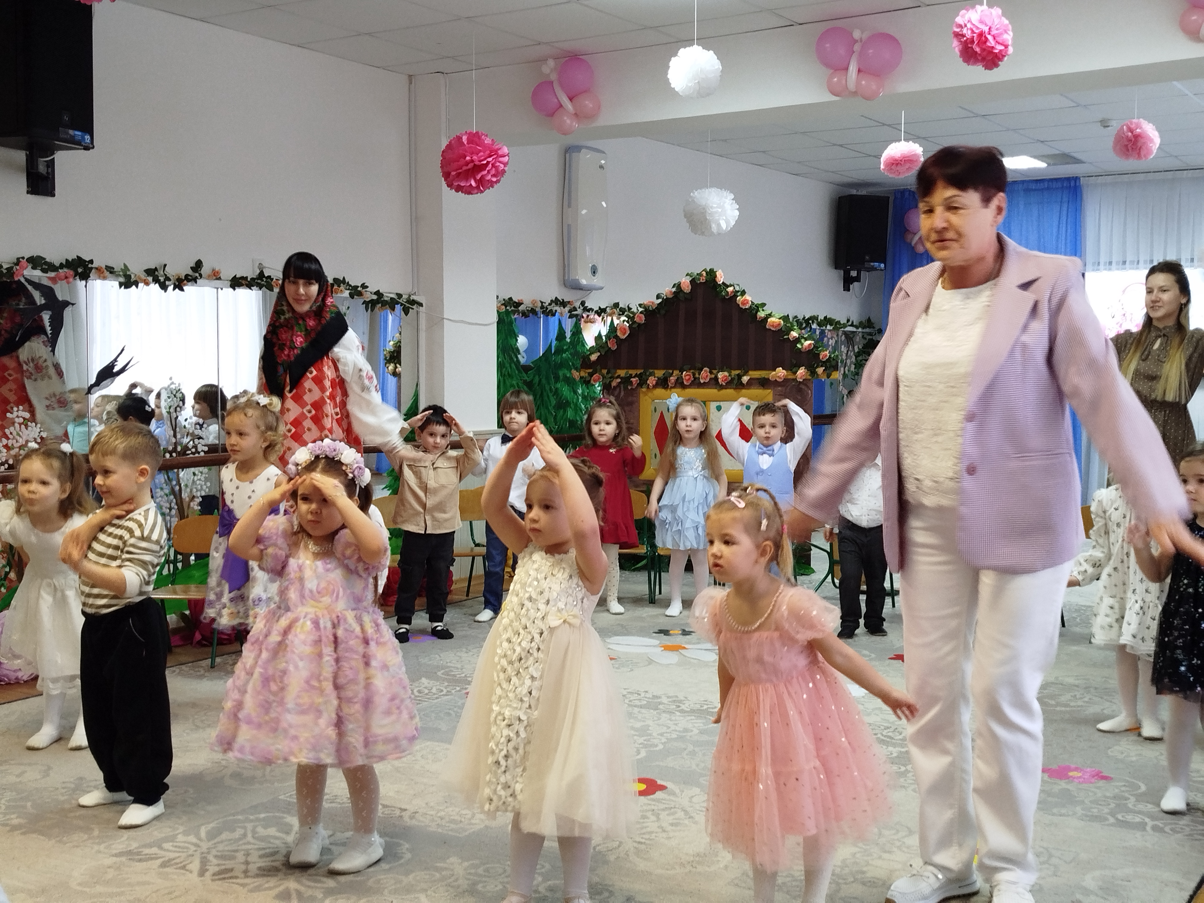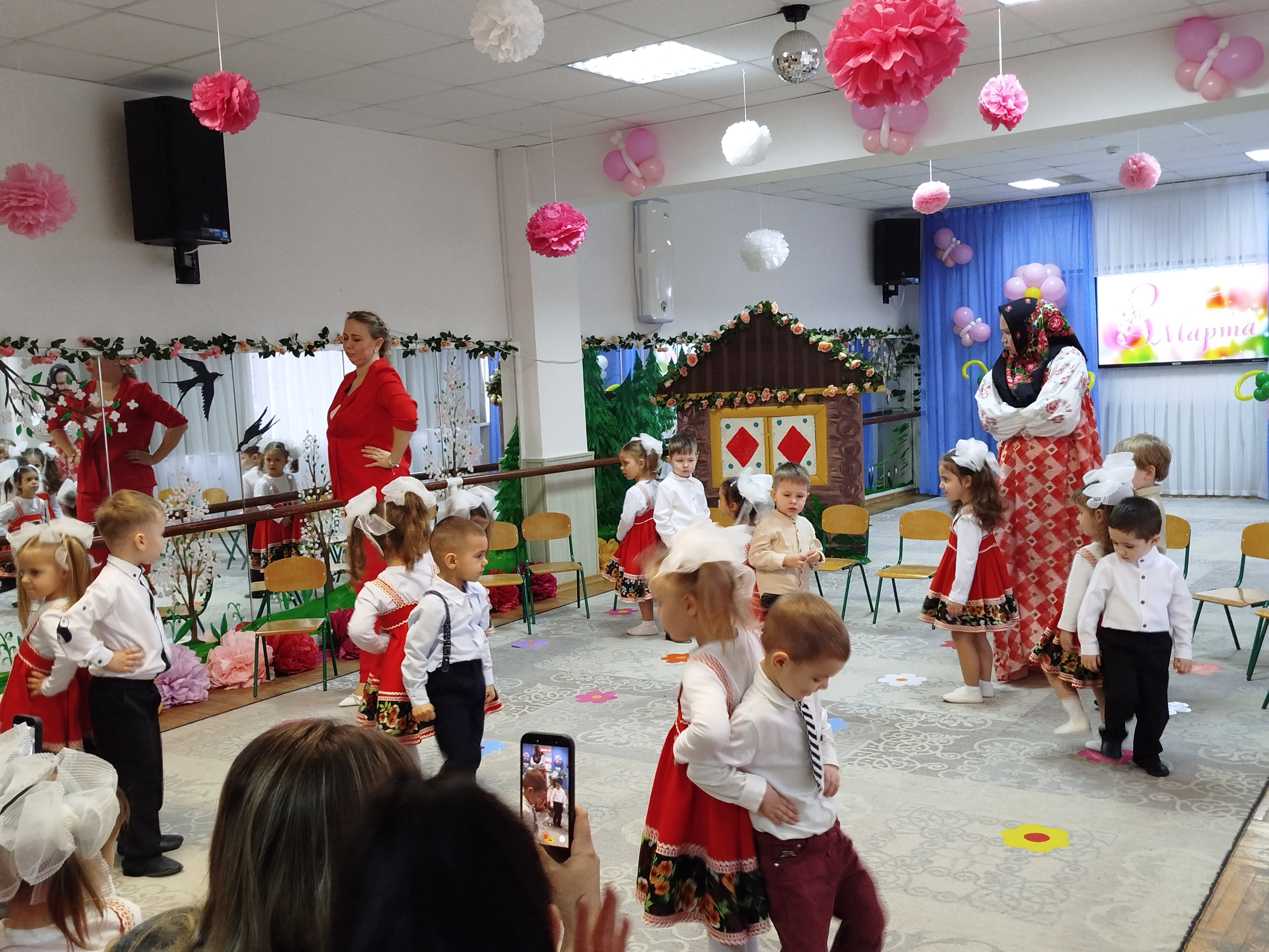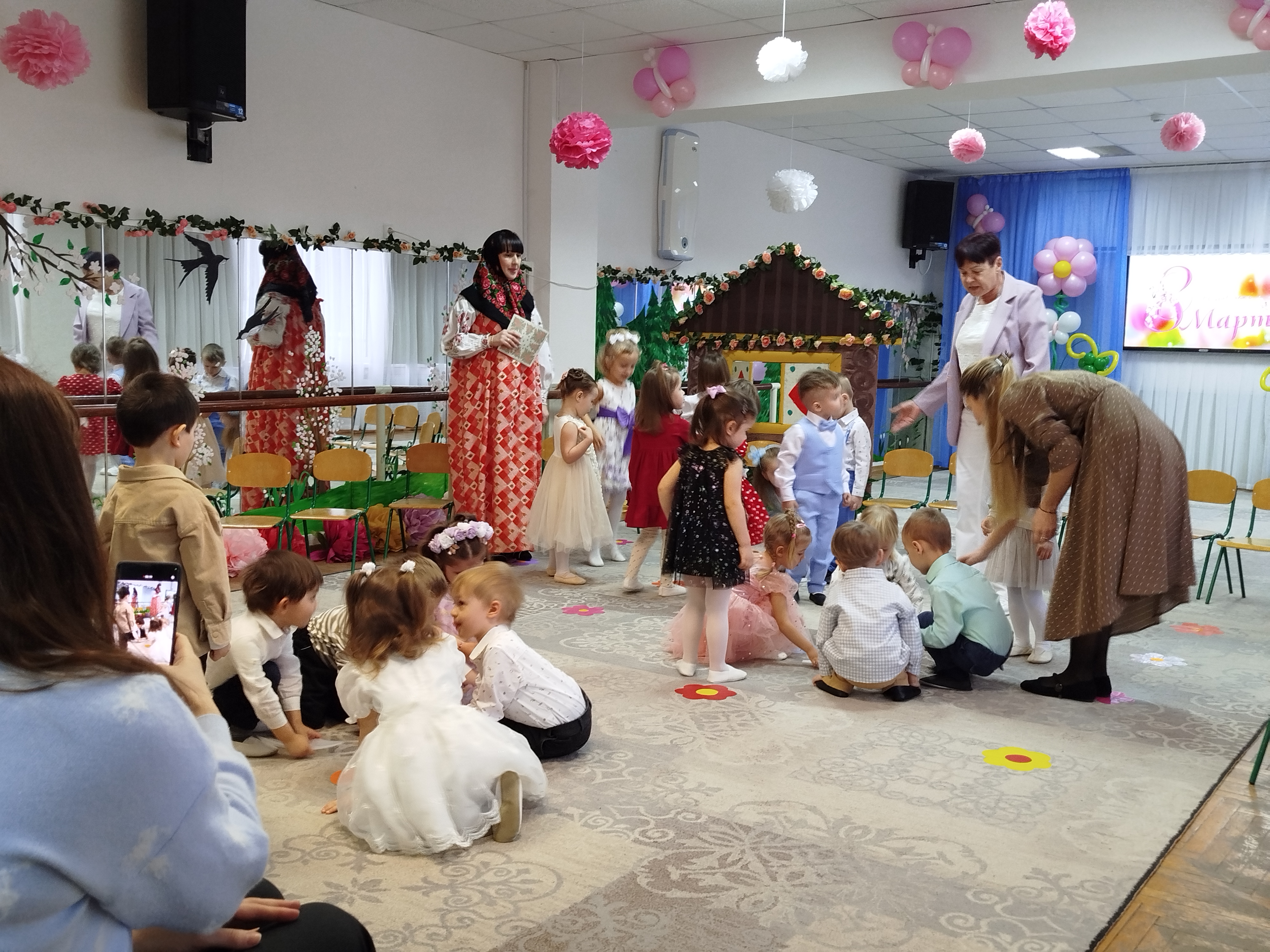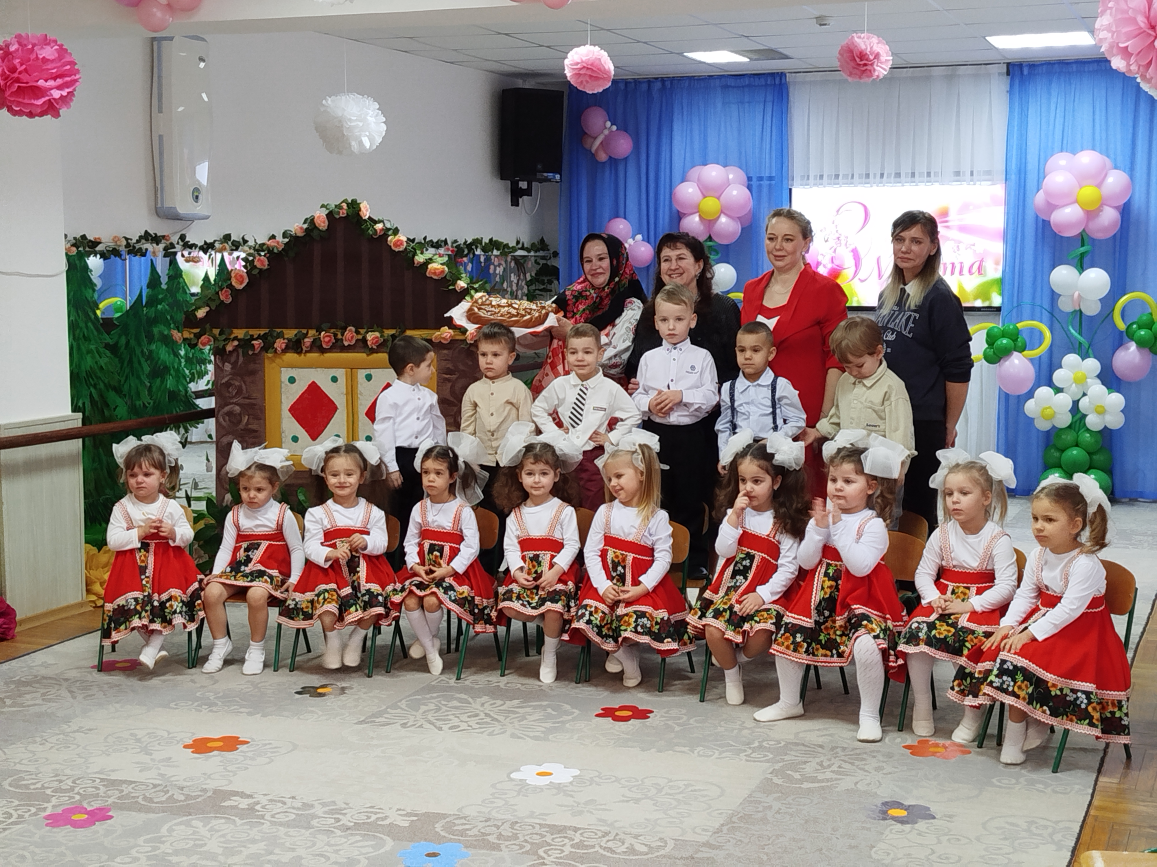 3 марта, в преддверии Международного женского дня, в "Сказке" прошли утренники у младших групп "Чебурашка" и "Журавушка". В гости к ребятам пришла Матрешка. Ребята ей рассказали о празднике и все вместе для мам и бабушек они пели песни, рассказывали красивые и нежные стихотворения-поздравления, танцевали затейливые танцы. Матрешке так понравился утренник. что она угостила детей пирогом. А мамы и бабушки от детей получили подарки, сделанные своими руками.
