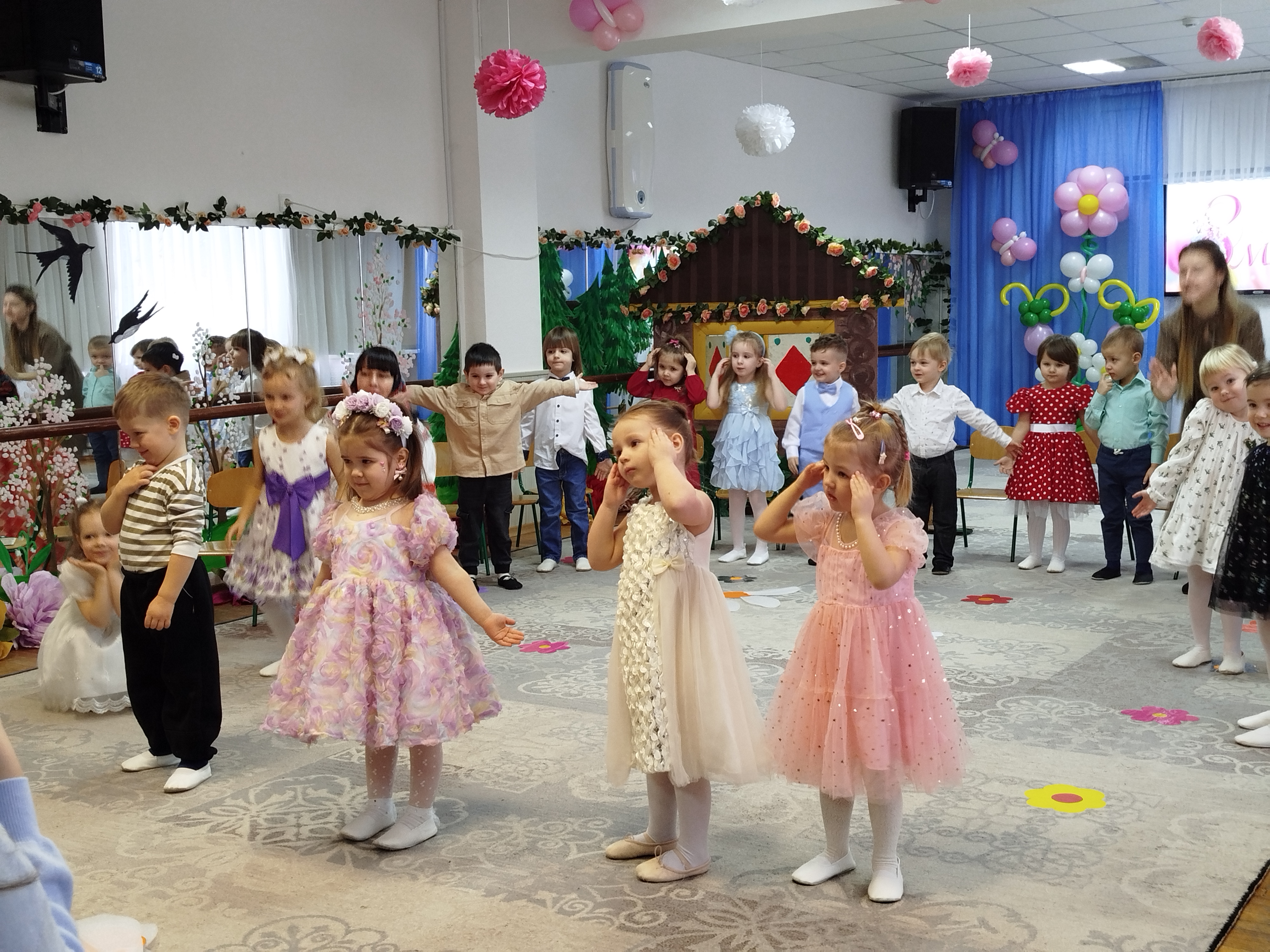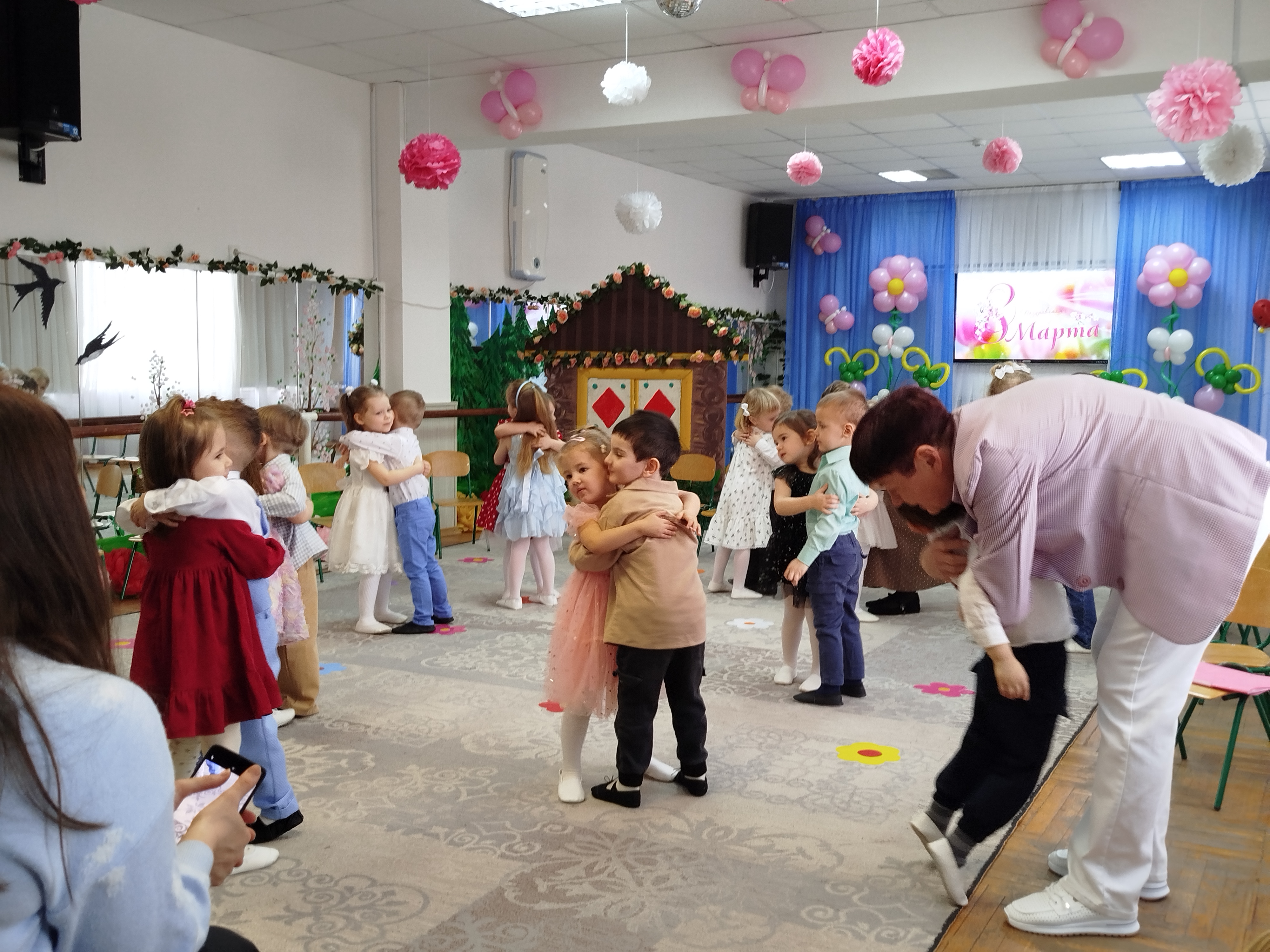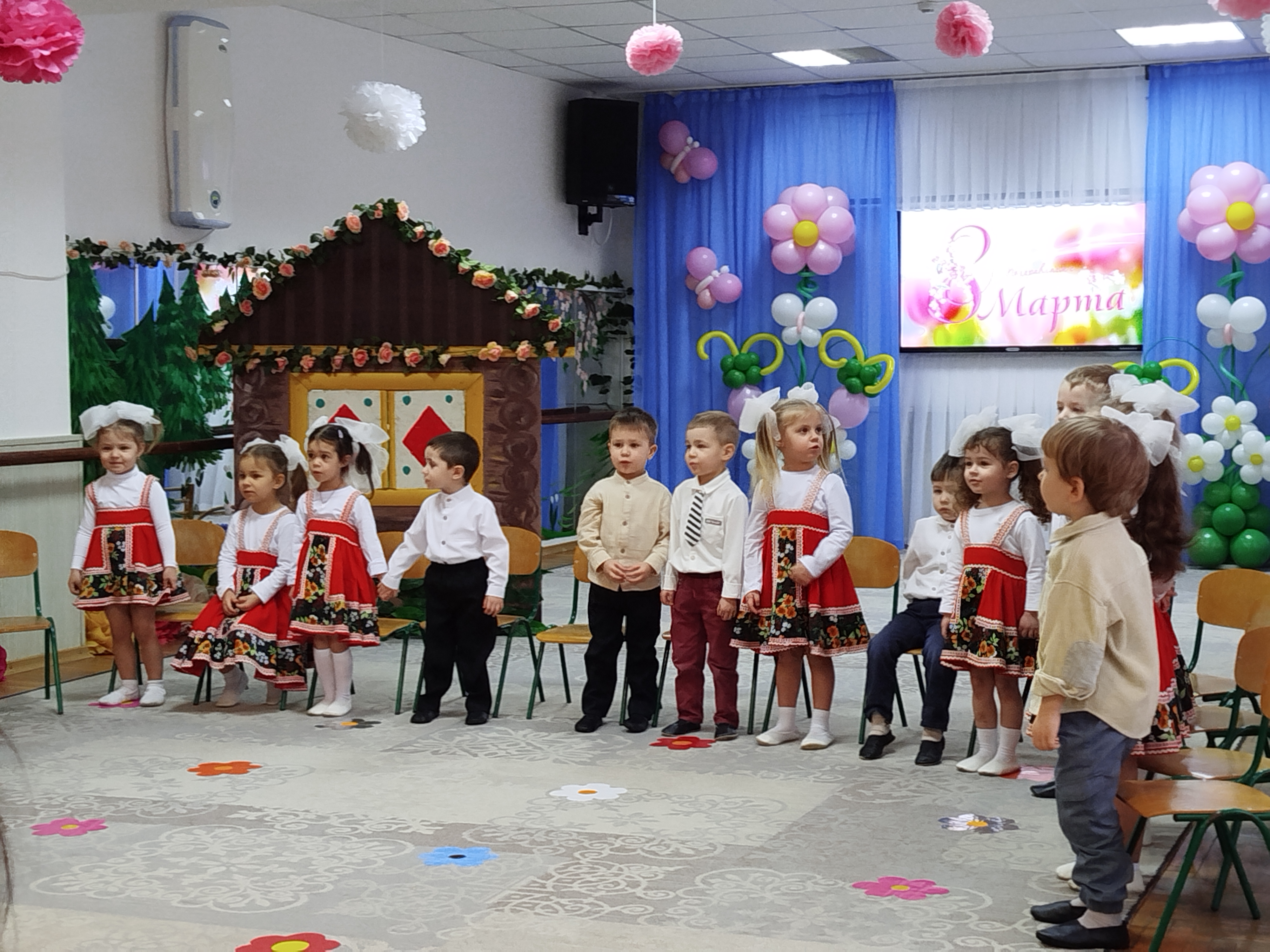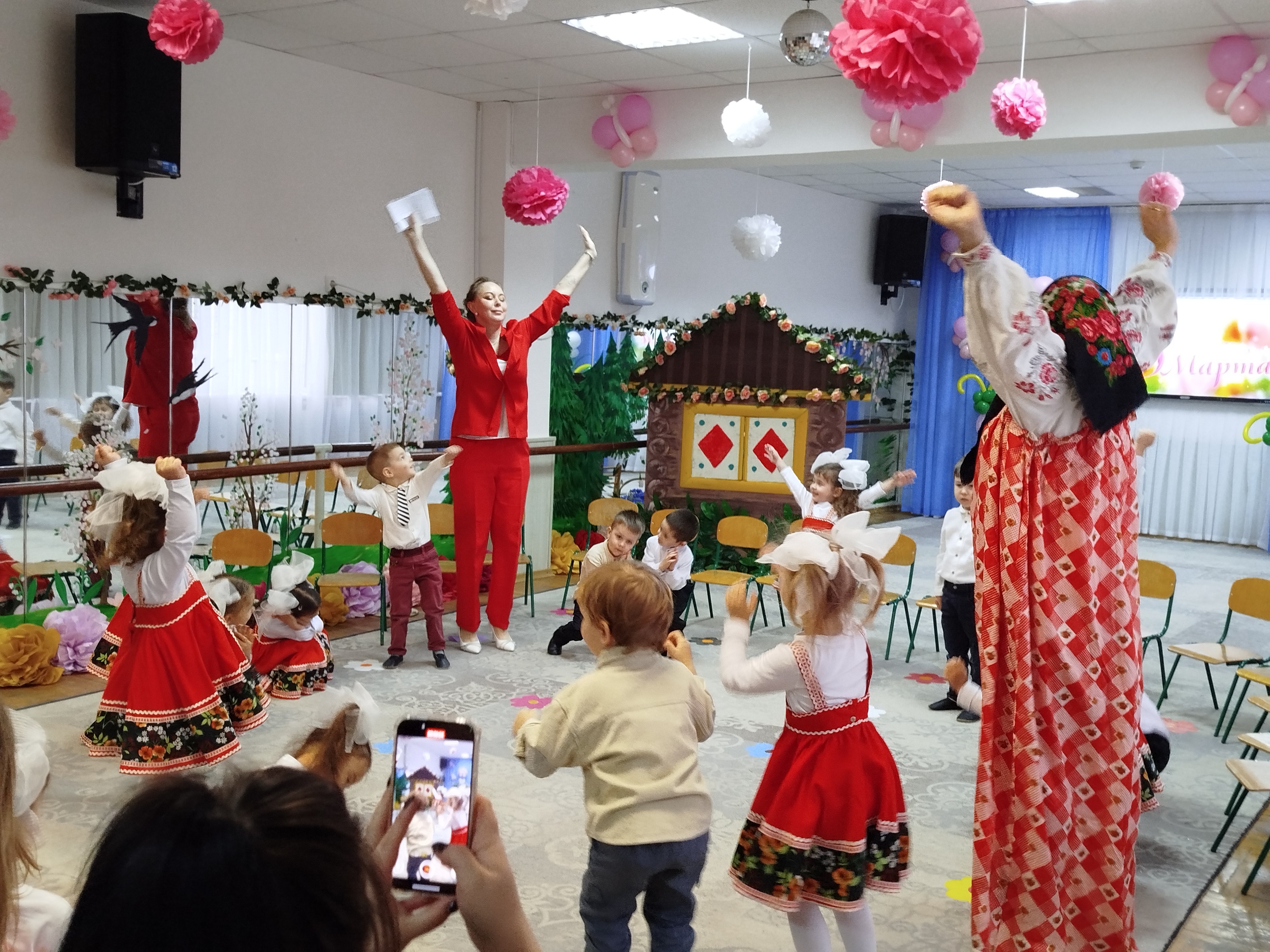 3 марта, в преддверии Международного женского дня, в "Сказке" прошли утренники у младших групп "Чебурашка" и "Журавушка". В гости к ребятам пришла Матрешка. Ребята ей рассказали о празднике и все вместе для мам и бабушек они пели песни, рассказывали красивые и нежные стихотворения-поздравления, танцевали затейливые танцы. Матрешке так понравился утренник. что она угостила детей пирогом. А мамы и бабушки от детей получили подарки, сделанные своими руками.