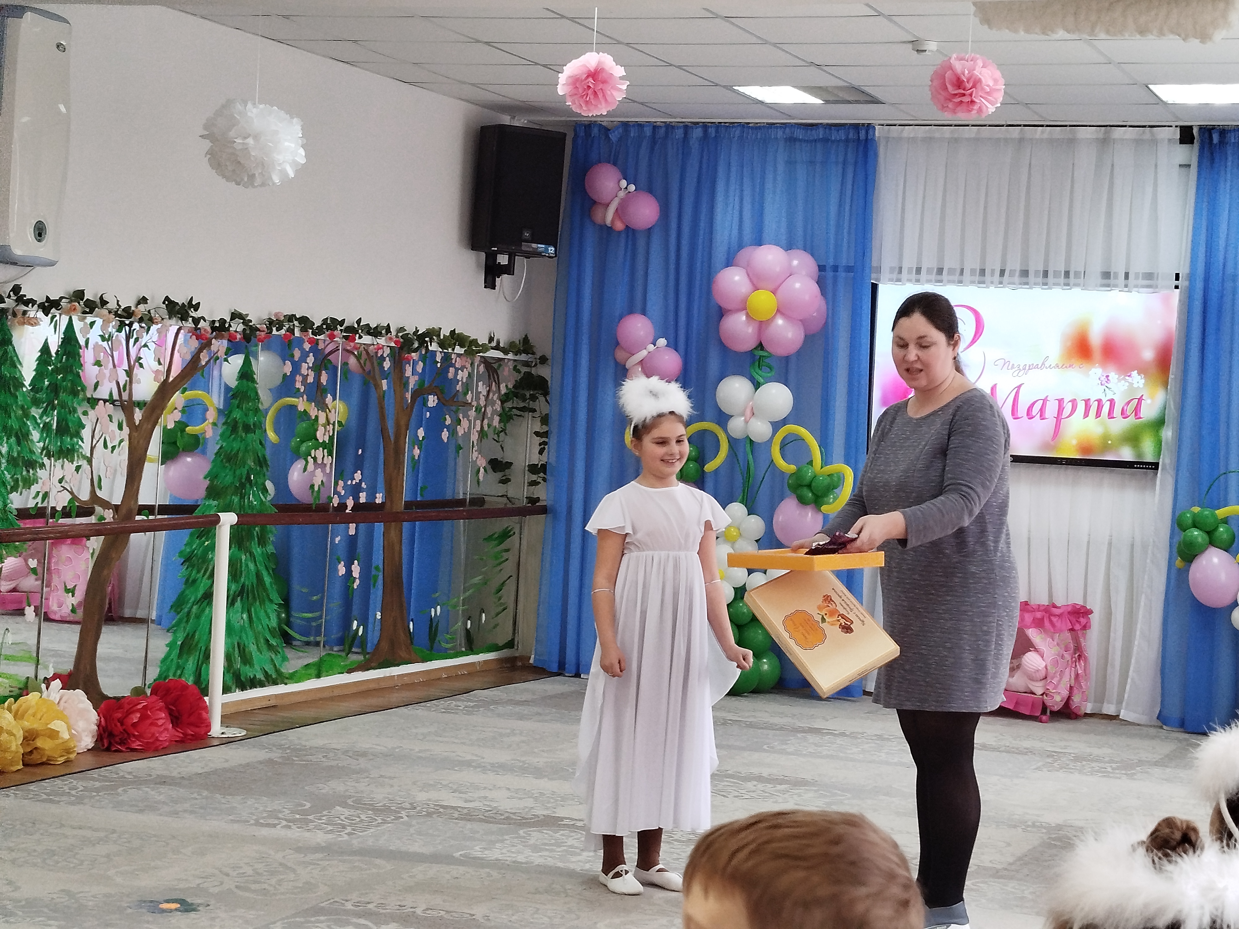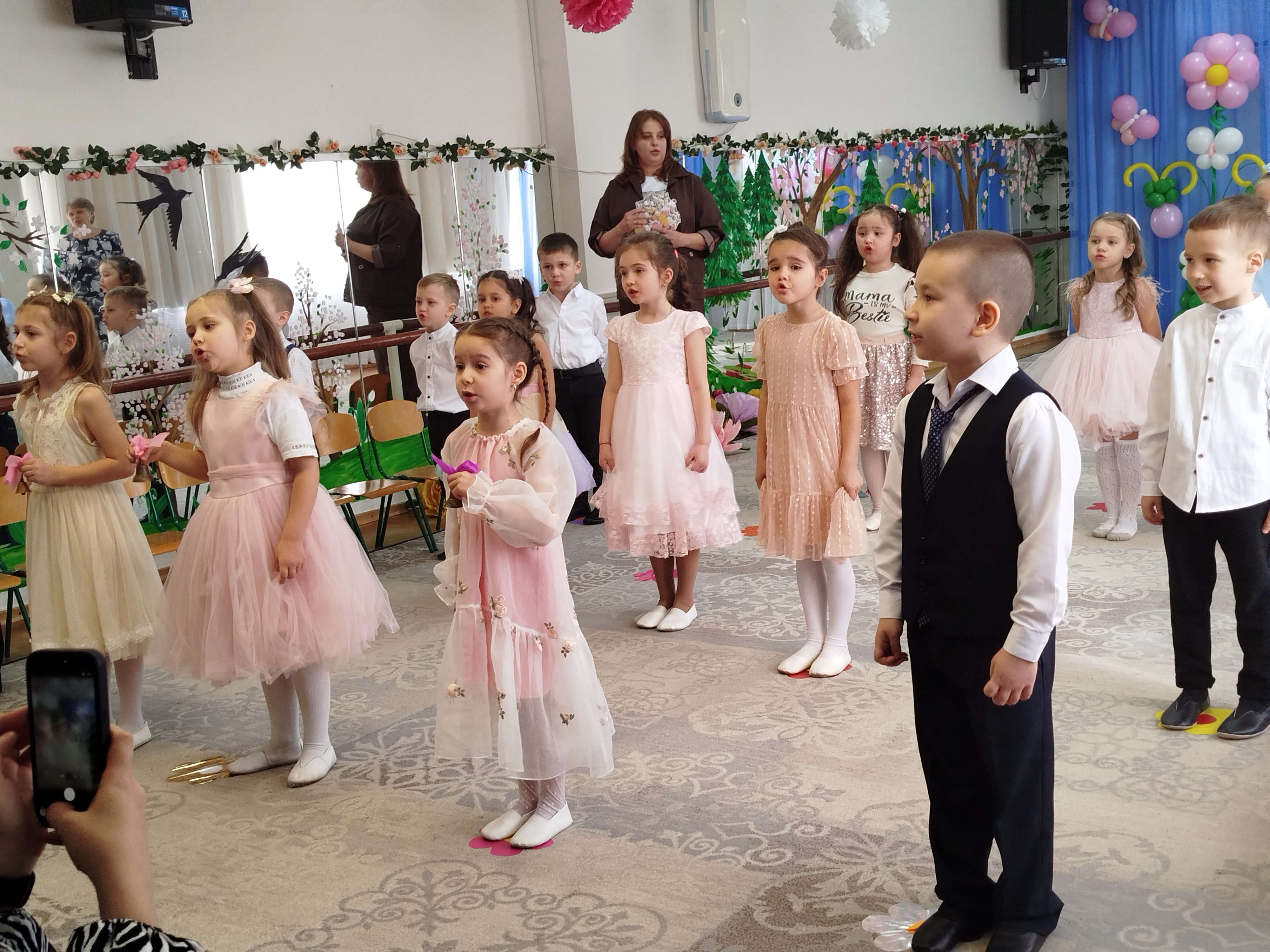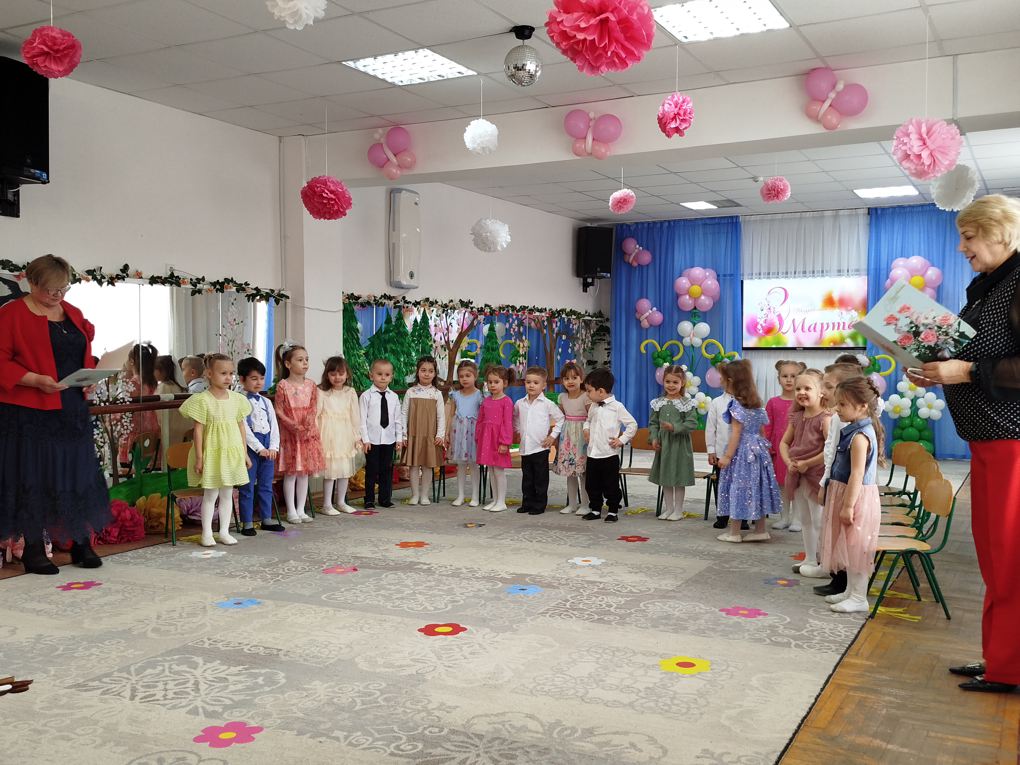 4 и 5 марта утренники прошли в средних группах ("Аленький цветочек", "Белоснежка"), старших группах ("Красная шапочка", "Теремок") и подготовительной группе "Аленушка". К ребятам средних групп пришла в гости Веснушка - она помогла узнать, о чем мечтают мамы и бабушки. В старшие группы наведалась Кикимора - ей очень хотелось быть лучше, красивее и умнее наших девочек, мам и бабушек. А воспитанники подготовительной группы поздравили своих родных танцем ангелов, забавными сценками, оркестром и душевными песнями, стихотворениями. Ребята подарили мамам и бабушками подарки, сделанные своими руками.