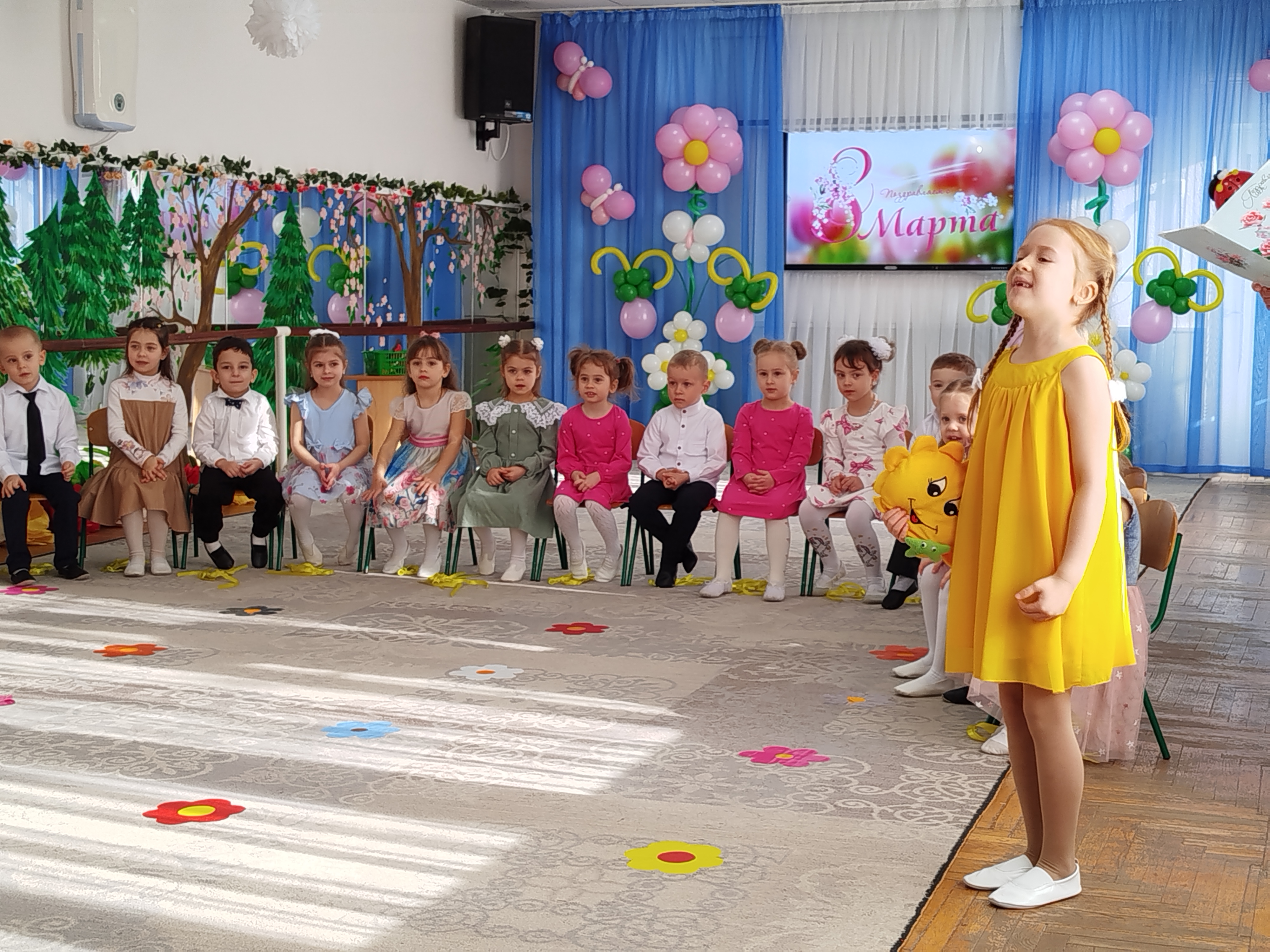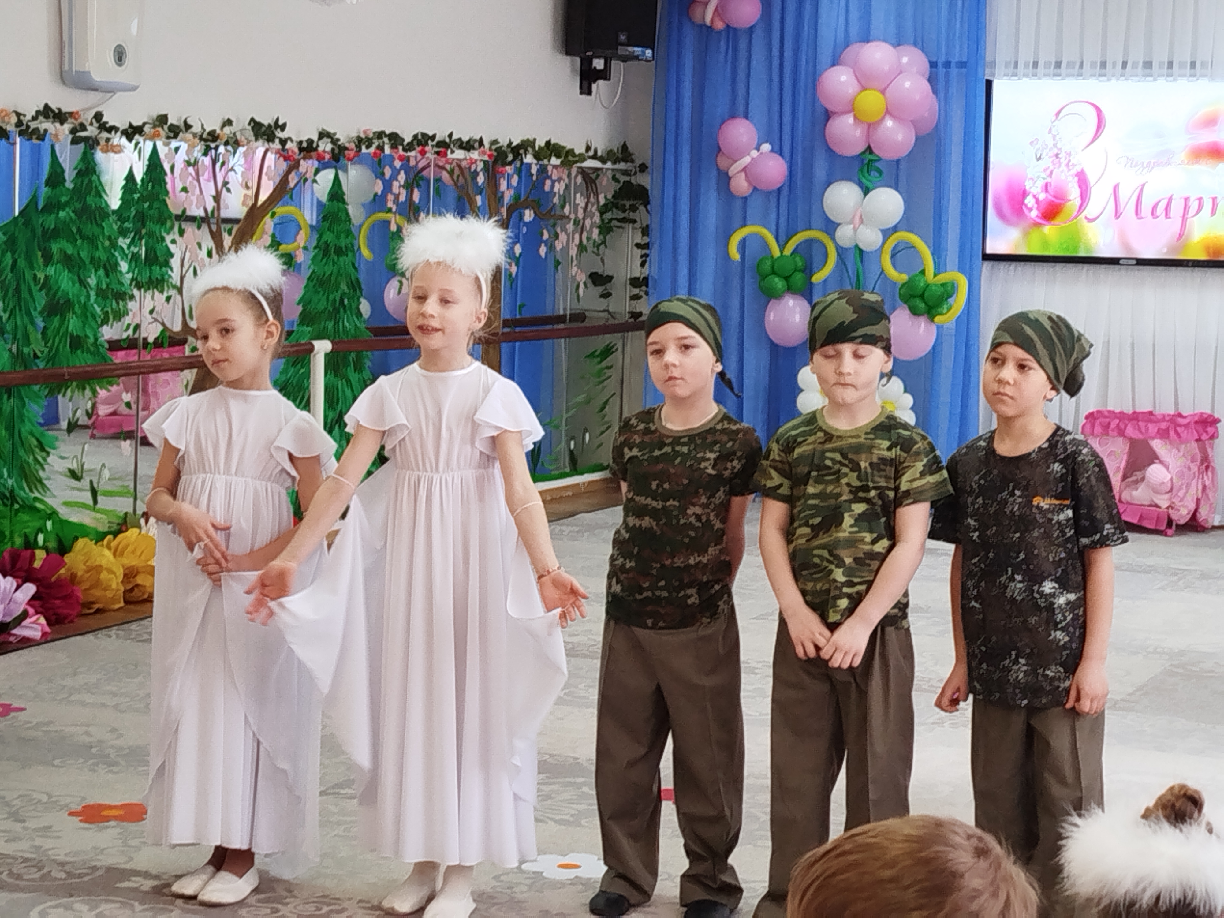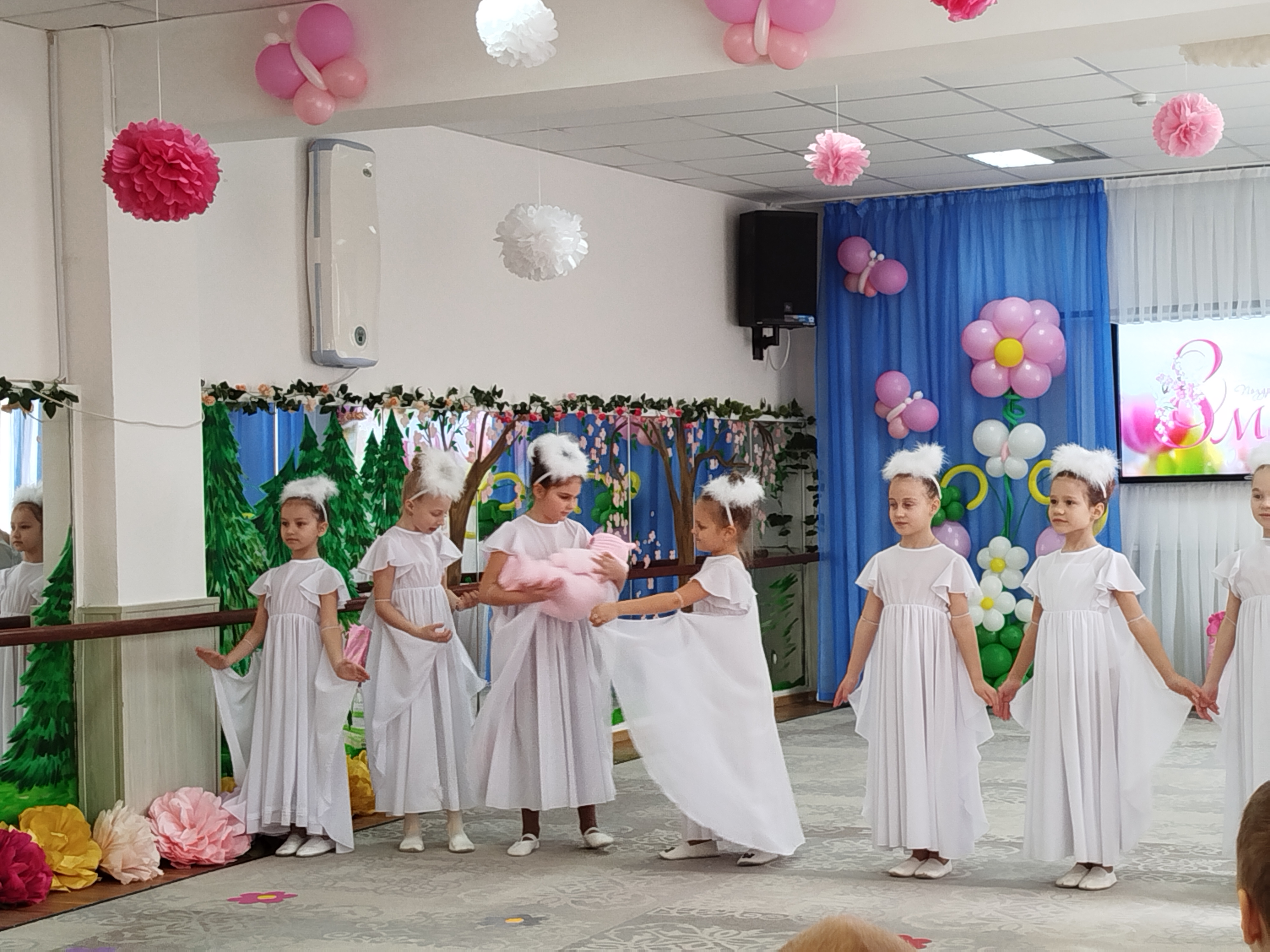4 и 5 марта утренники прошли в средних группах ("Аленький цветочек", "Белоснежка"), старших группах ("Красная шапочка", "Теремок") и подготовительной группе "Аленушка". К ребятам средних групп пришла в гости Веснушка - она помогла узнать, о чем мечтают мамы и бабушки. В старшие группы наведалась Кикимора - ей очень хотелось быть лучше, красивее и умнее наших девочек, мам и бабушек. А воспитанники подготовительной группы поздравили своих родных танцем ангелов, забавными сценками, оркестром и душевными песнями, стихотворениями. Ребята подарили мамам и бабушками подарки, сделанные своими руками.